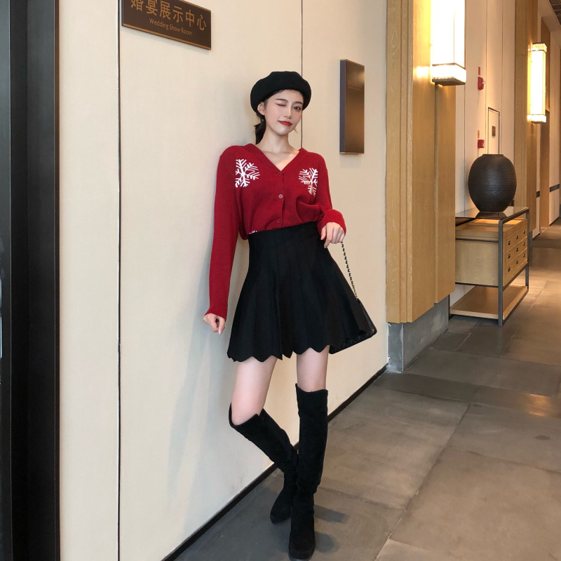 / 2018秋冬新款韓版chic修身百搭雪花針織衫開衫高腰半身裙時尚套裝