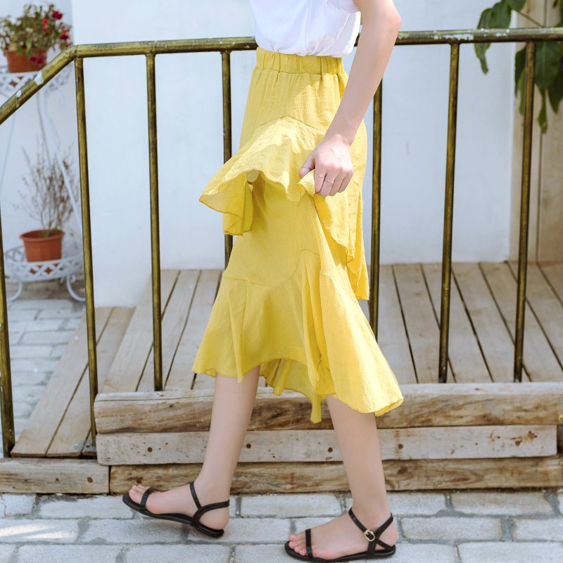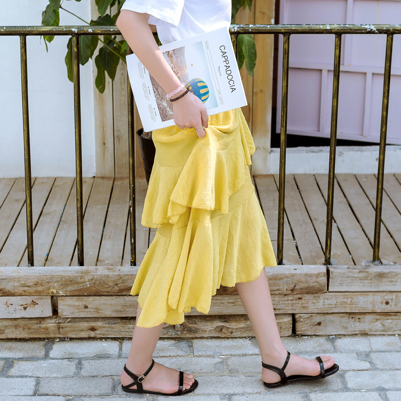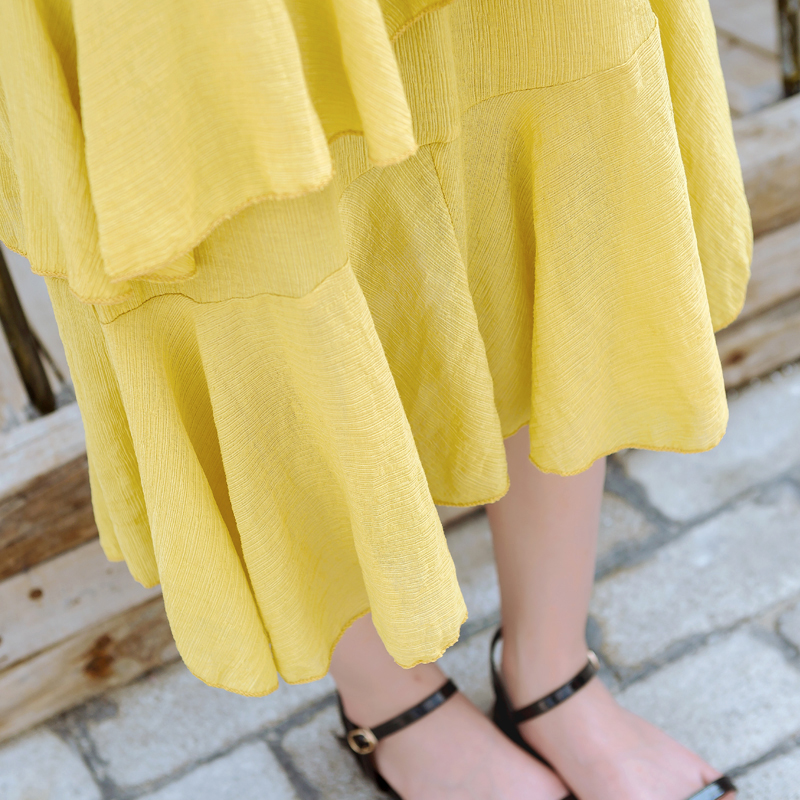 Caqa/珂奇春夏新款韓國中長款半身蛋糕裙雪紡蓬蓬裙長裙高腰
