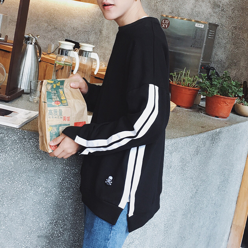 春裝新款男士純棉上衣字母圓領長袖衛衣潮套頭外套