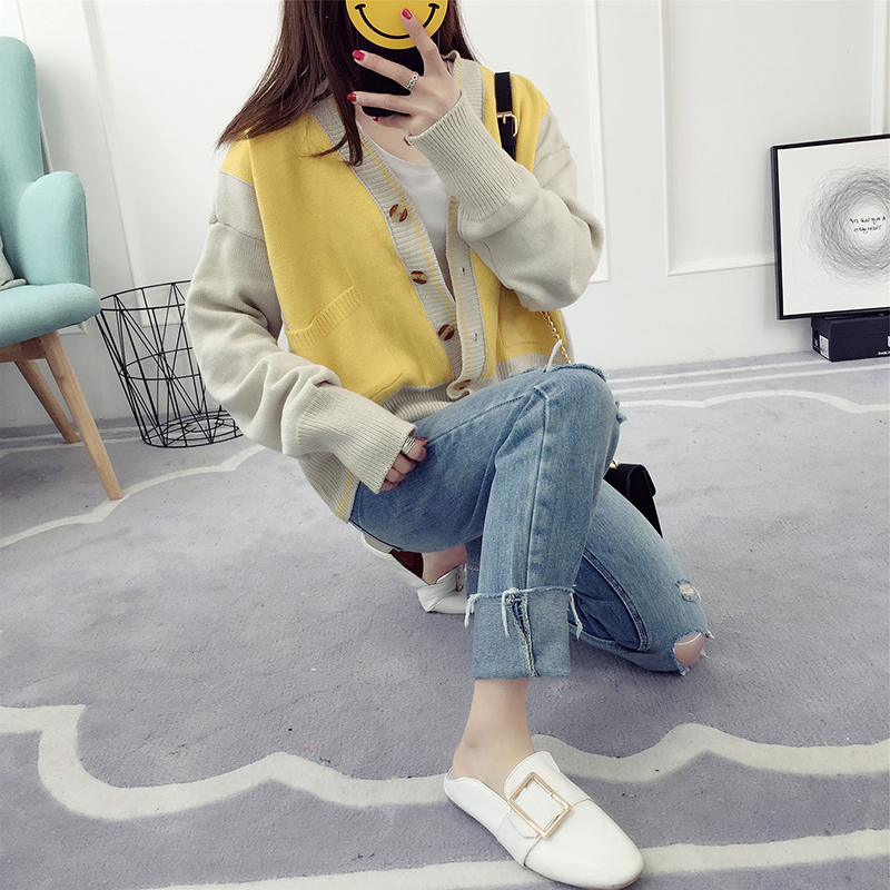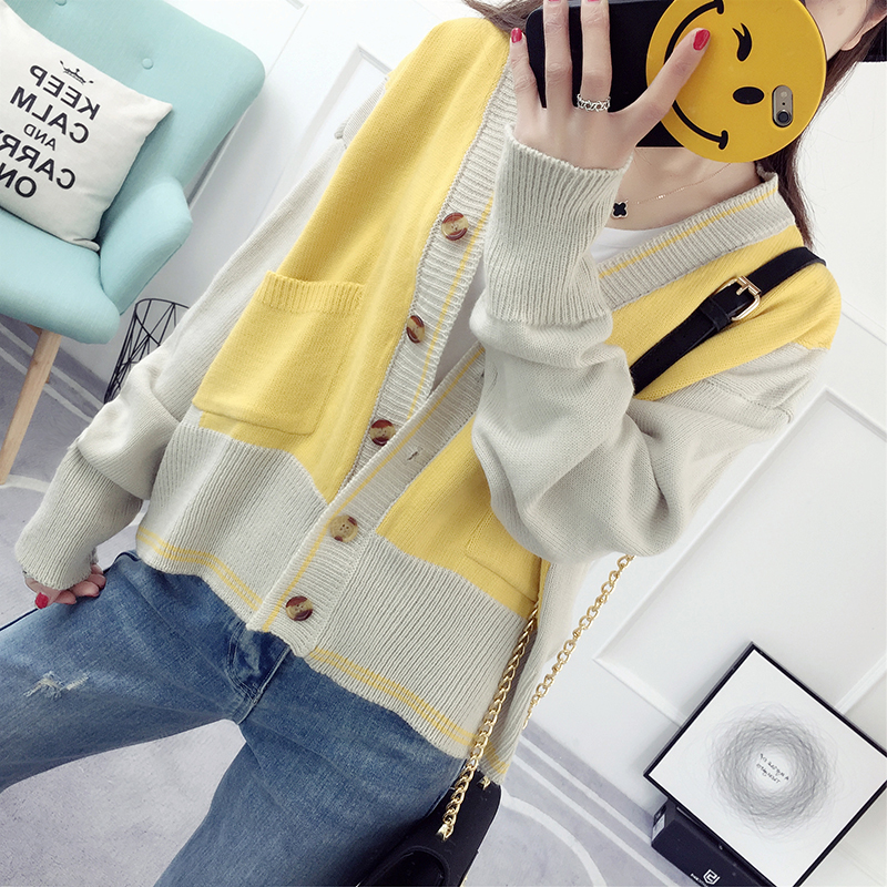 針織開衫女外套春裝新款潮韓版寬松百搭學生長袖線衣短款毛衣