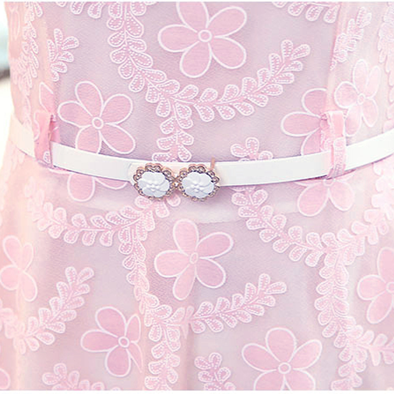夏季新款韓版A字裙小清新修身蕾絲時尚連衣裙女中裙