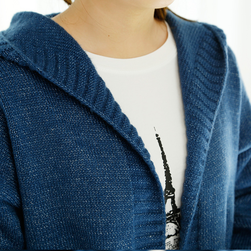 春裝新款女毛衣開衫韓版寬松中長款連帽針織衫純色外套女裝潮