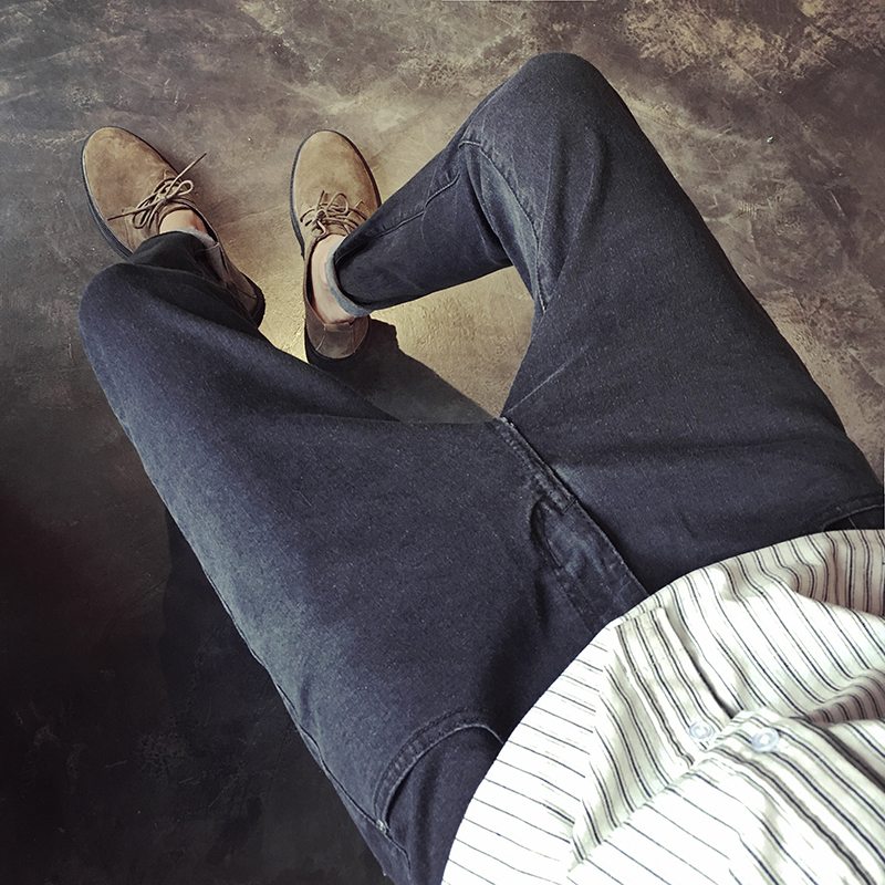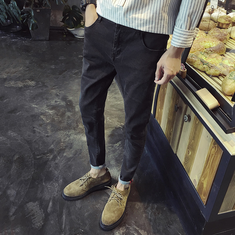 / 新款男裝韓版刺繡圖案修身小腳加絨保暖男士牛仔褲