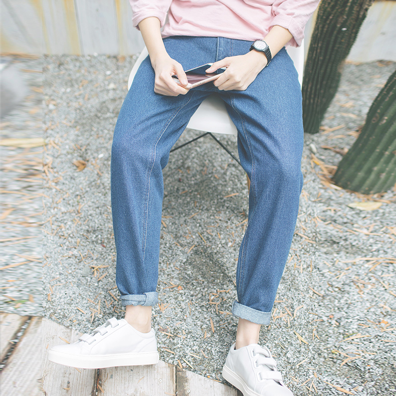 / 男裝原創韓版簡約加絨保暖丹寧水洗男士牛仔褲