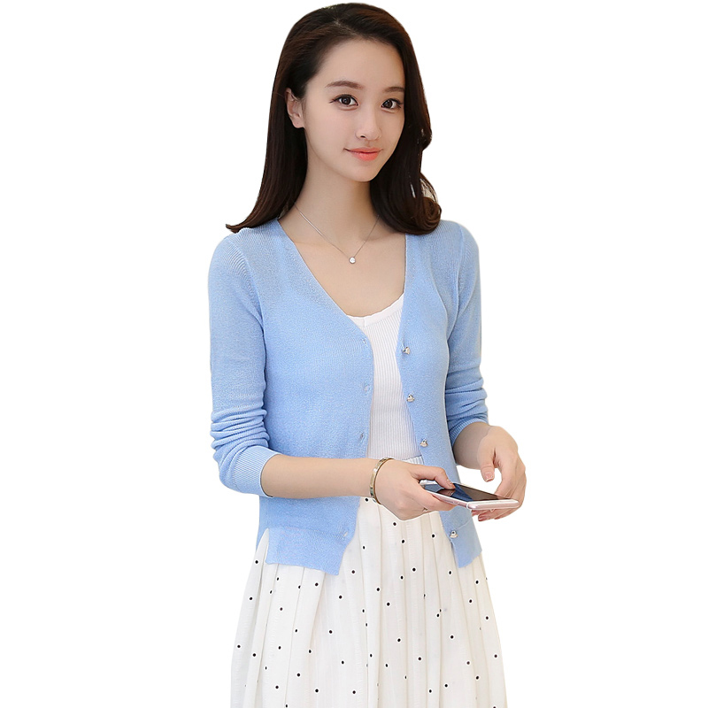 / 冰絲防曬開衫女夏薄短款長袖針織外套女夏季薄款外搭空調衫女開衫