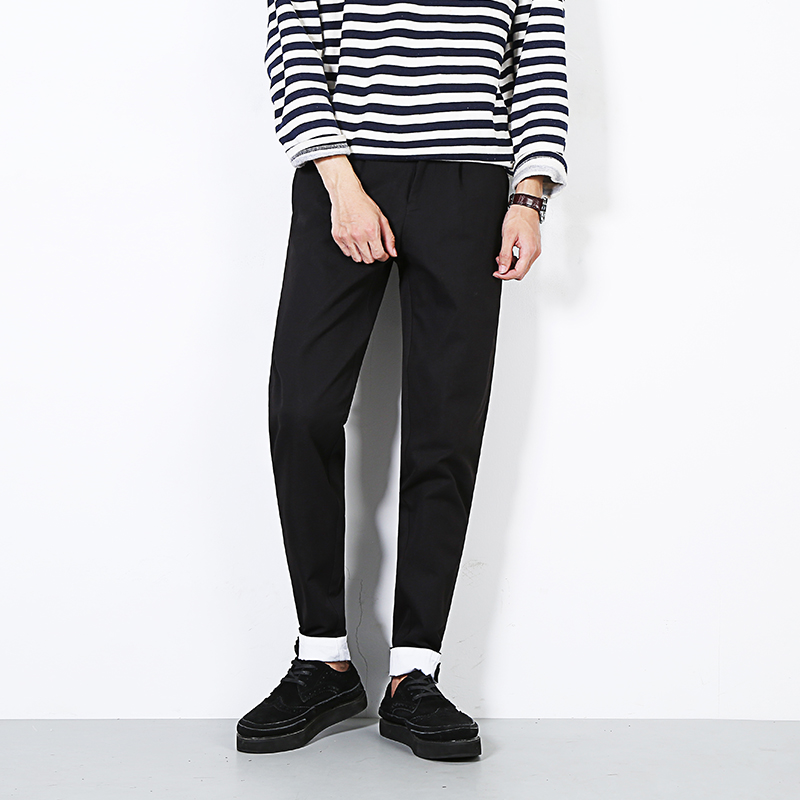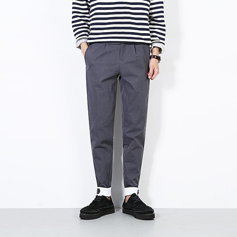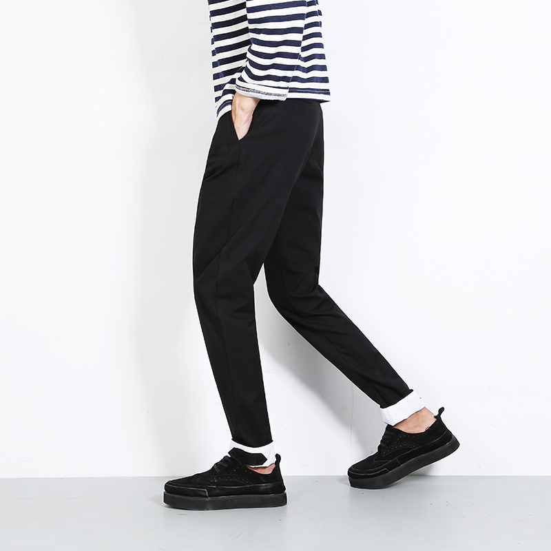 / 秋季新品韓版褲腳翻邊修身小腳錐形哈倫褲休閑褲男