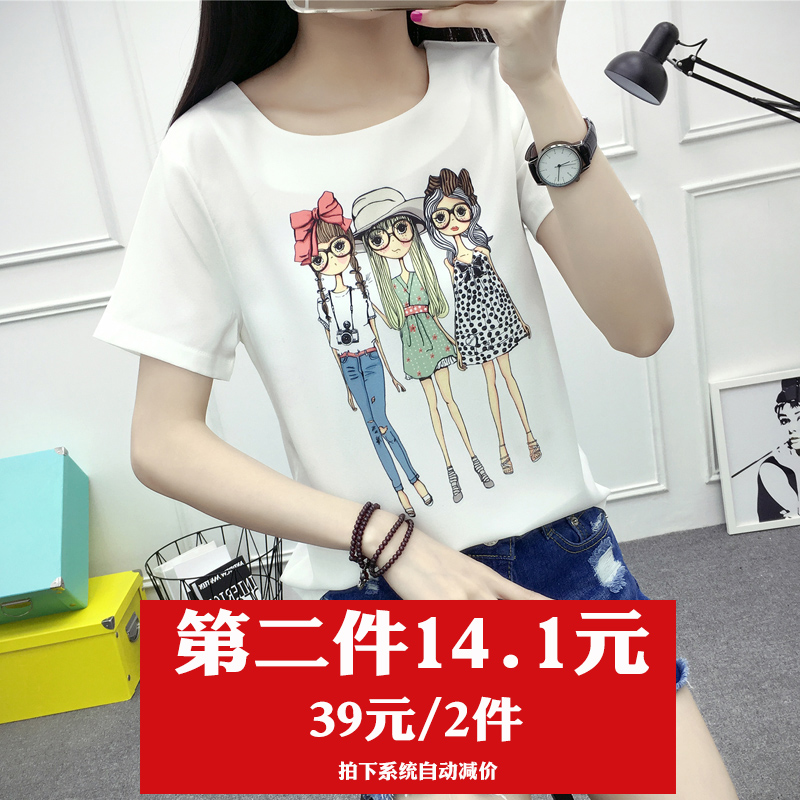 / 夏季新款雪紡衫短袖T恤女韓版寬松大碼百搭學生印花雪紡上衣