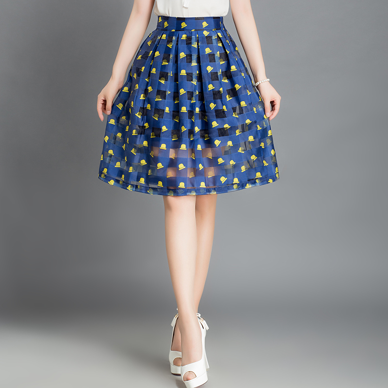 / 夏新款百褶不規則網紗紗裙半身裙蓬蓬裙中長款玻璃紗高腰雪紡