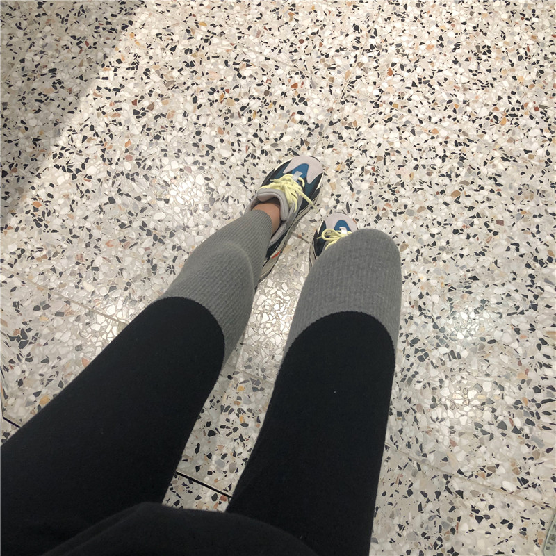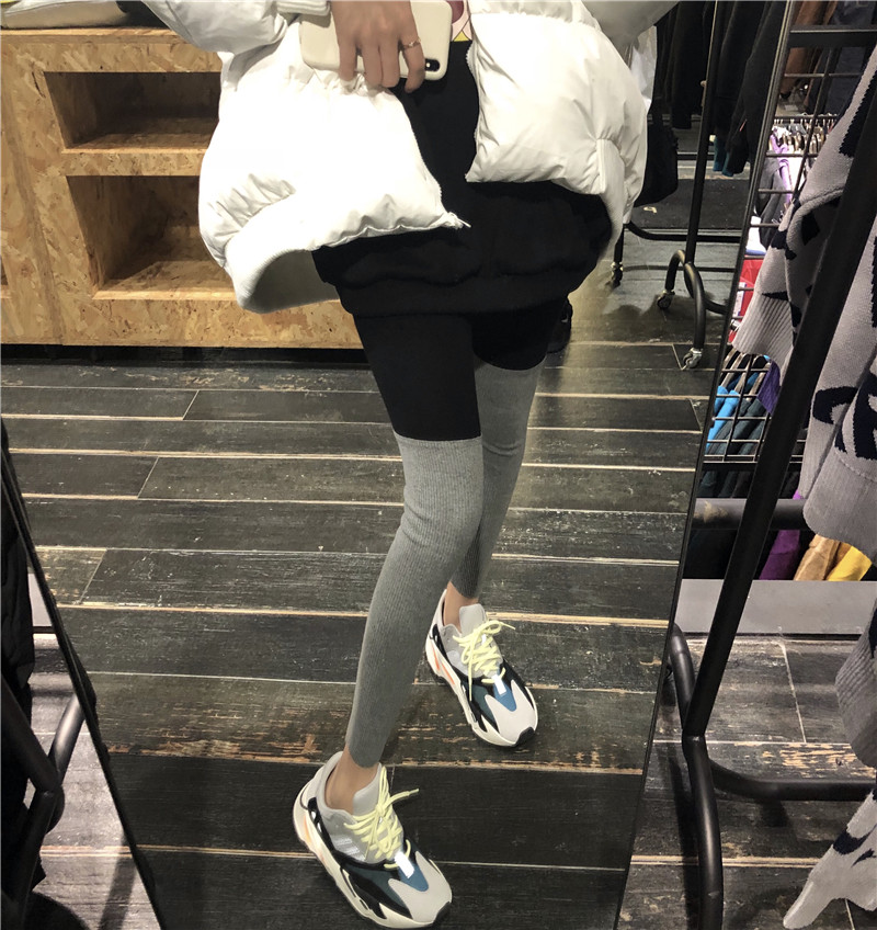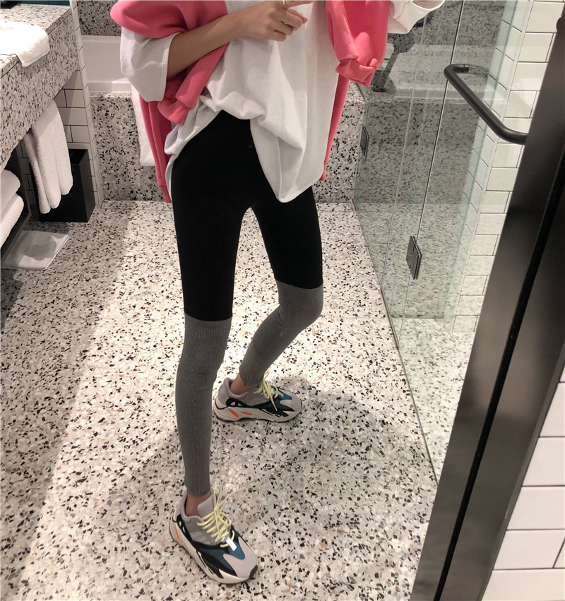/ 秋冬新款chic時尚韓版百搭拼色彈力顯瘦針織打底運動褲顯瘦褲子女