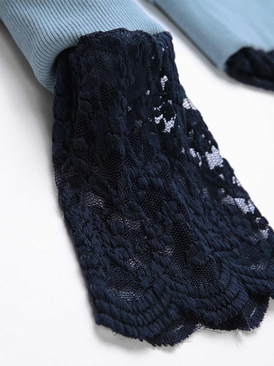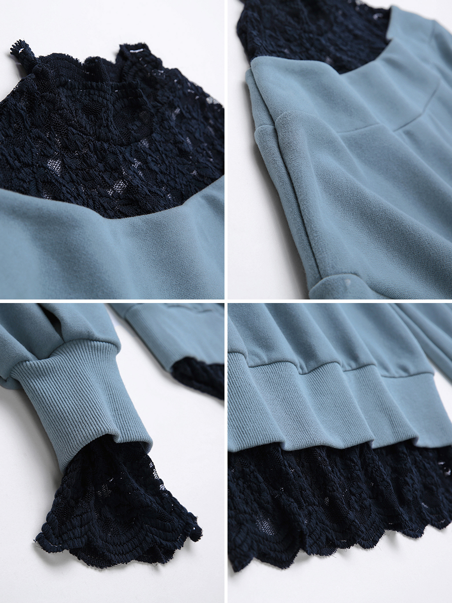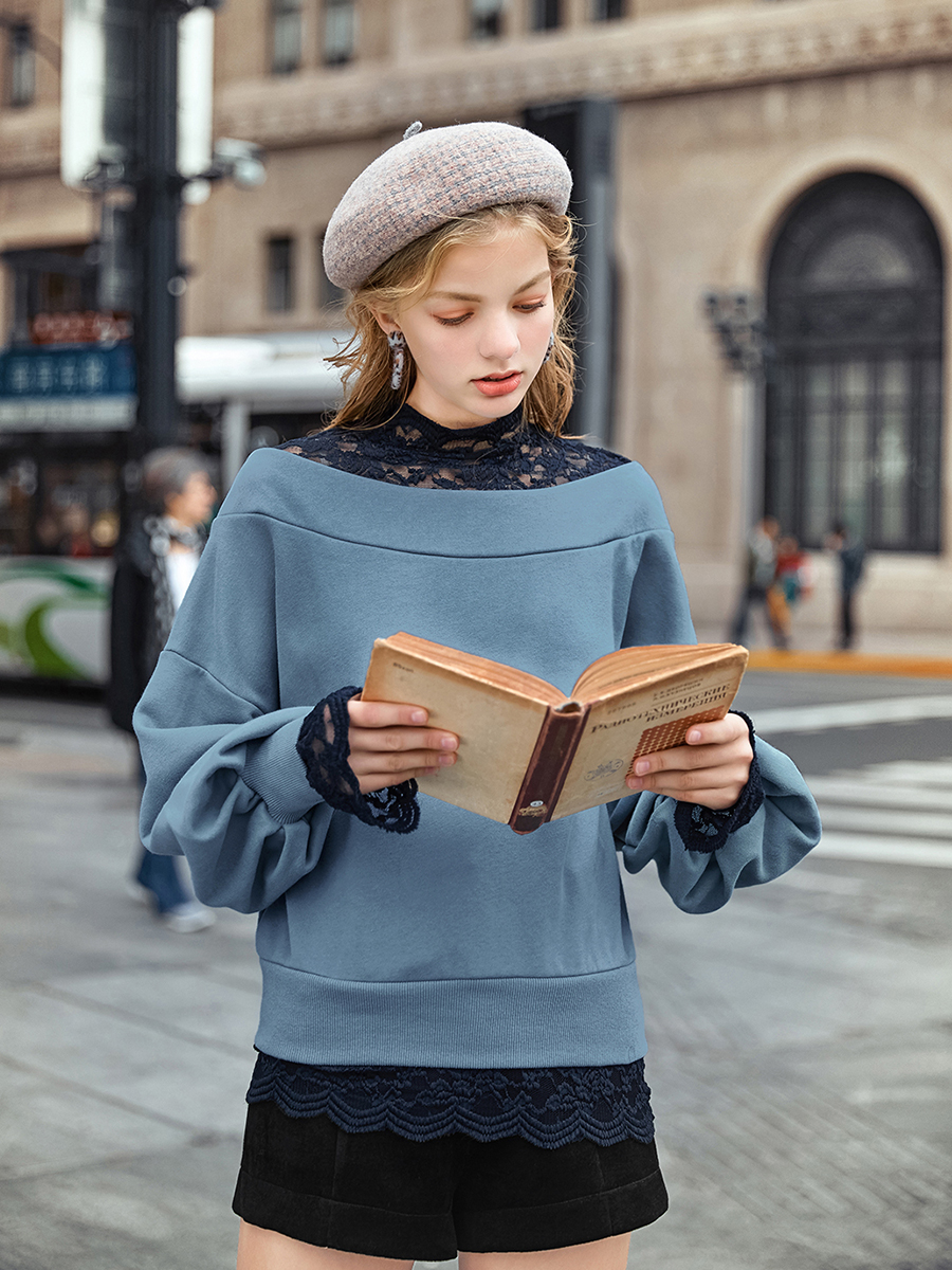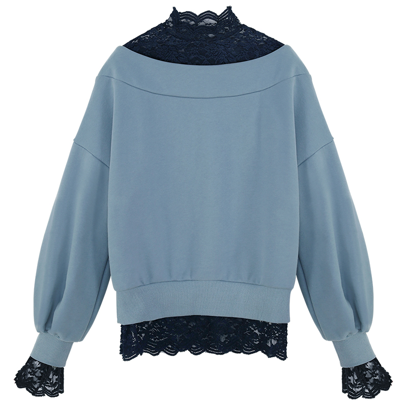 MG小象蕾絲拼接衛衣女圓領套頭外套冬季新款寬松燈籠袖休閑上衣潮