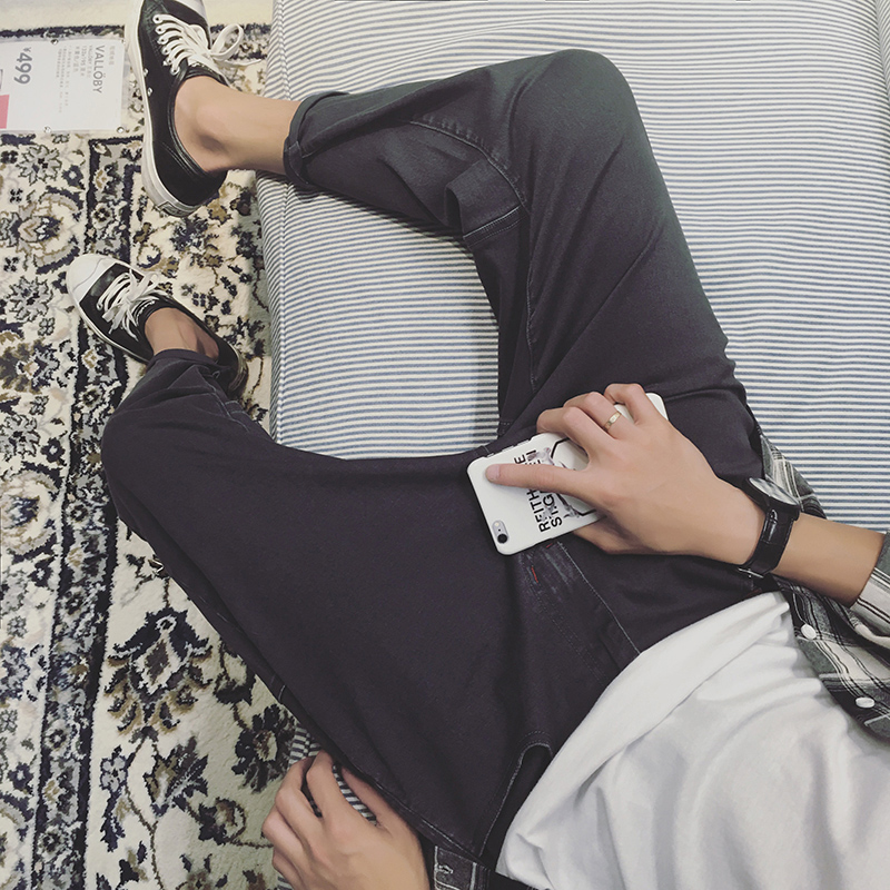 / 秋裝新款韓版修身休閑長褲純色百搭男士薄款小腳褲