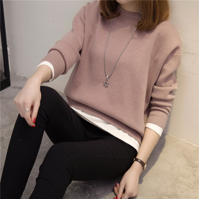 / 女裝冬裝新款潮針織衫假兩件毛衣女秋冬套頭打底衫長袖外套女