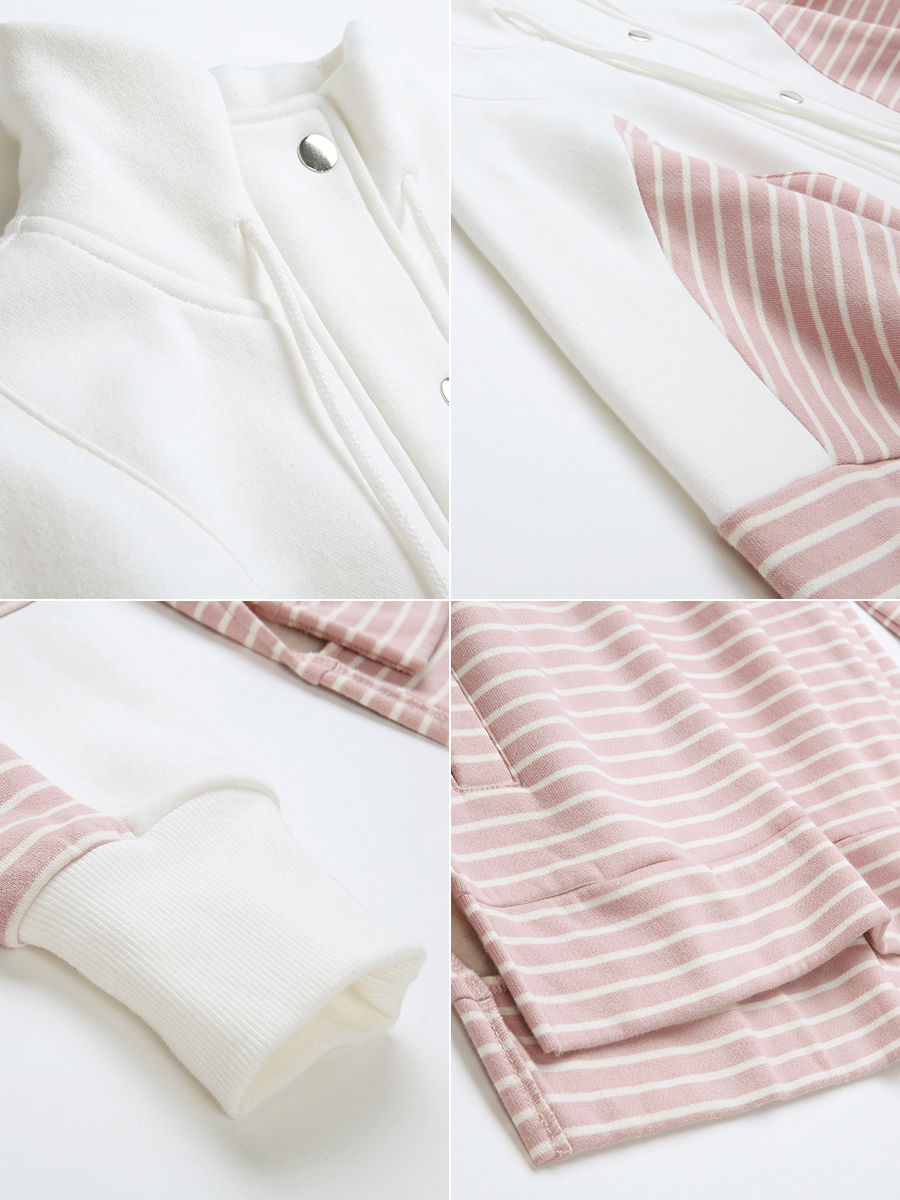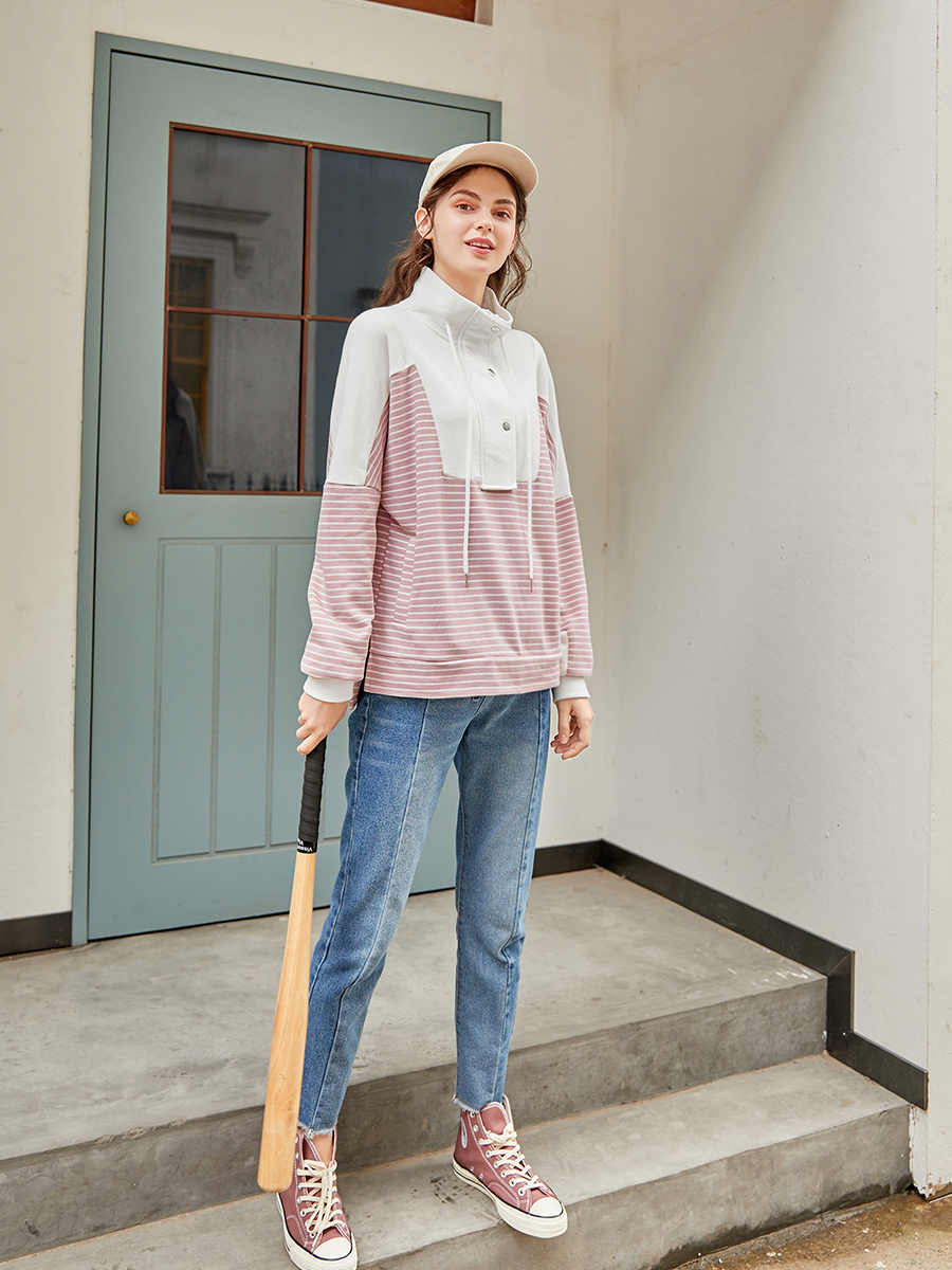 MG小象粉色條紋衛衣女個性寬松2018秋冬新款套頭休閑學生拼接上衣