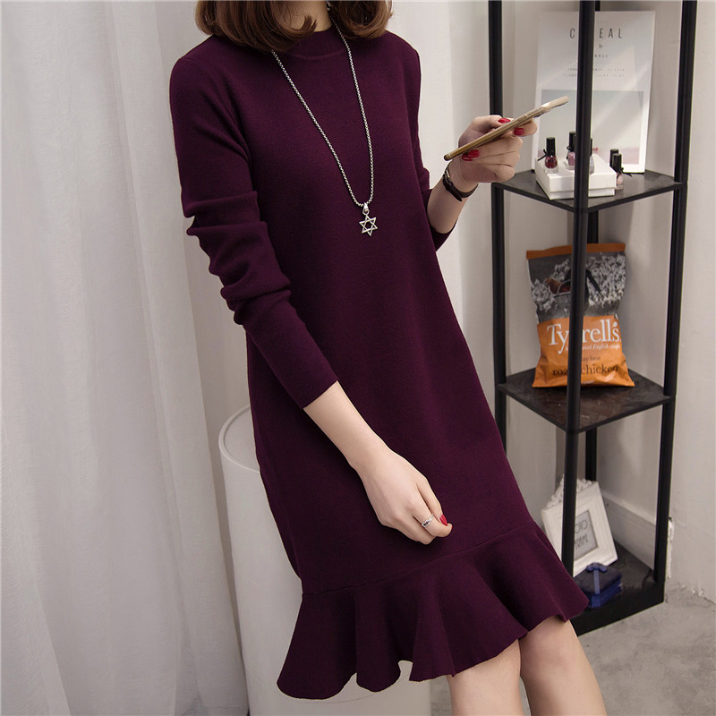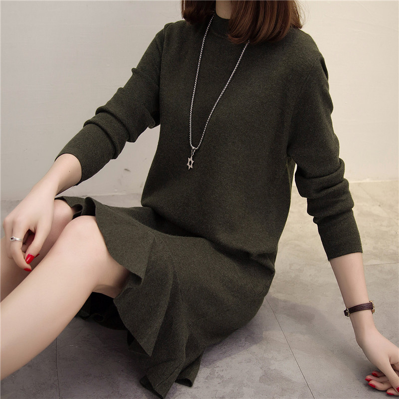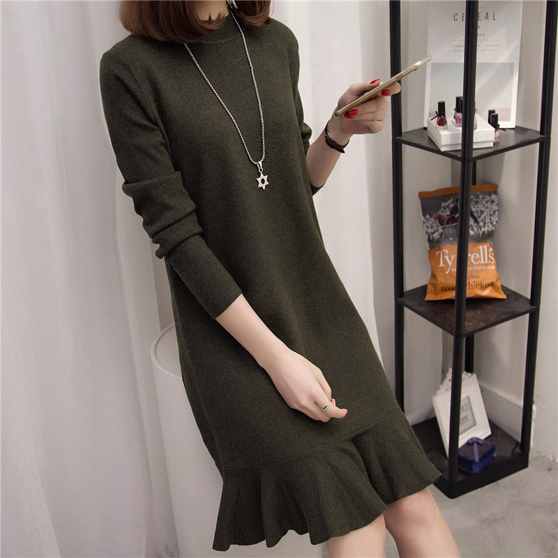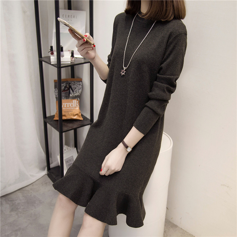 / 女裝冬裝新款潮套頭毛衣裙女秋冬季中長款寬松韓版長袖針織衫