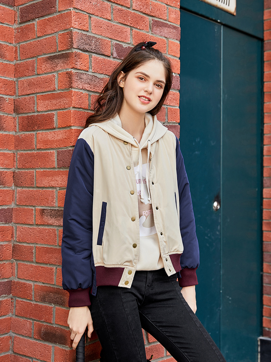 MG小象短款棉服女冬2018新款學生寬松長袖棒球服加厚拼色bf外套潮