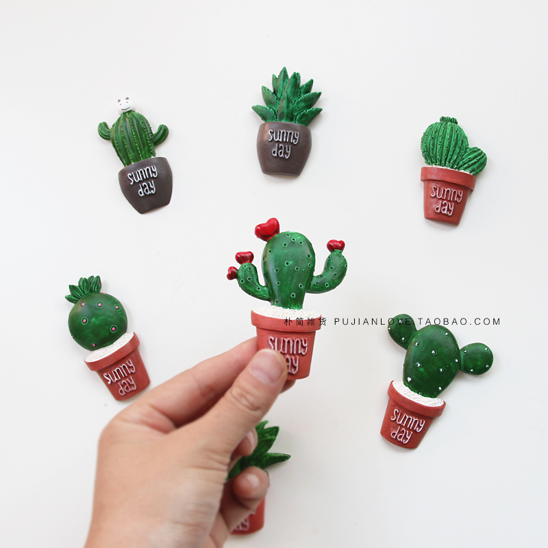 / 外貿綠色植物樹脂冰箱磁性貼 可愛仙人掌多肉花卉吸鐵石留言貼