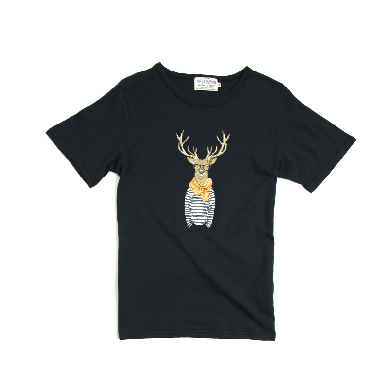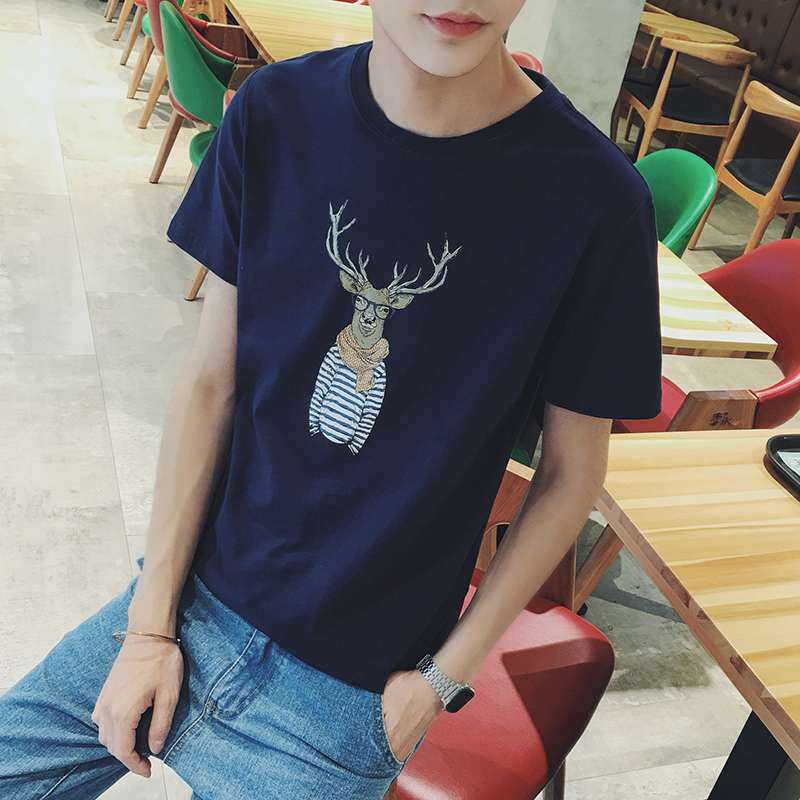 夏裝卡通小鹿動物印花短袖韓版修身男士T恤潮