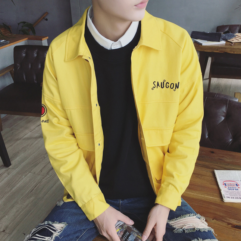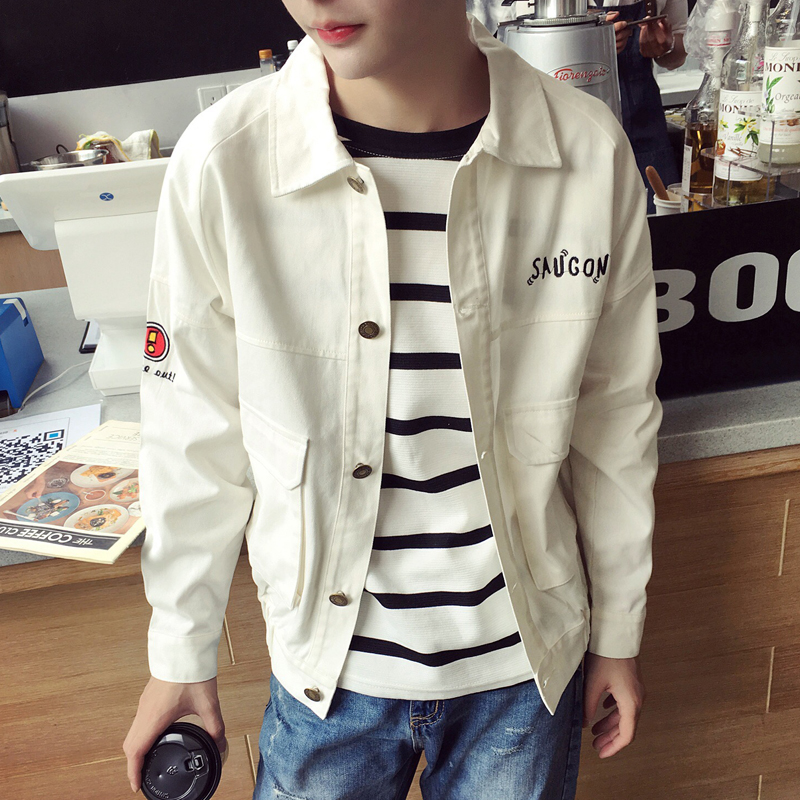 / 秋季新款韓版休閑刺繡翻領單排扣男士短褲夾克外套