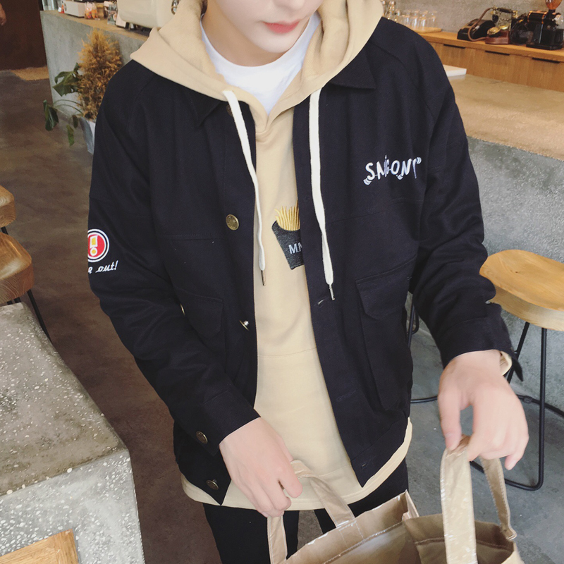 秋季新款韓版休閑刺繡翻領單排扣男士短褲夾克外套