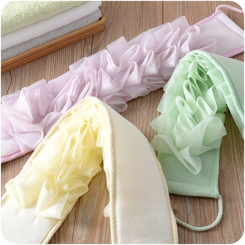 / 便捷拉手式背條沐浴巾加厚帶浴花搓背搓泥巾長條搓澡浴擦尼龍純色
