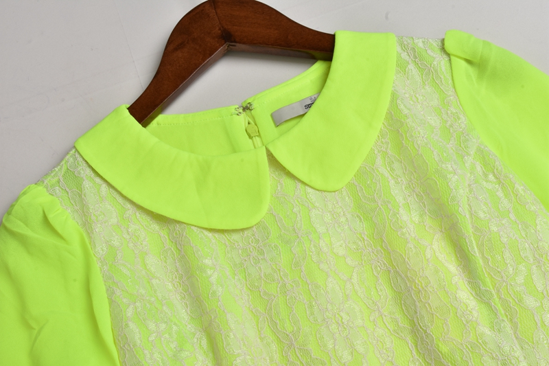 連衣裙春夏新款淑女氣質大碼蕾絲拼接優雅女裝后拉鏈娃娃領女裙