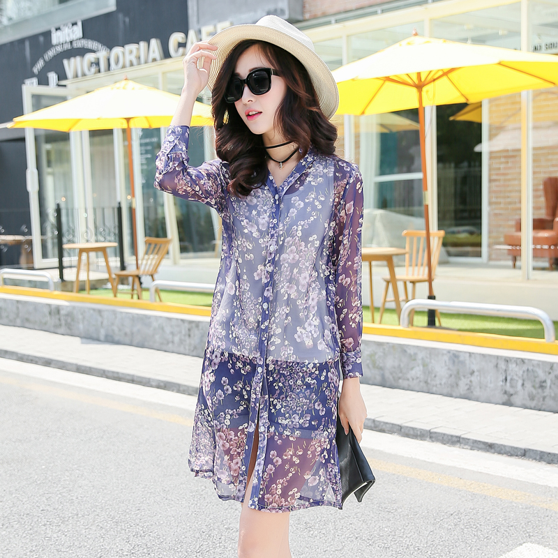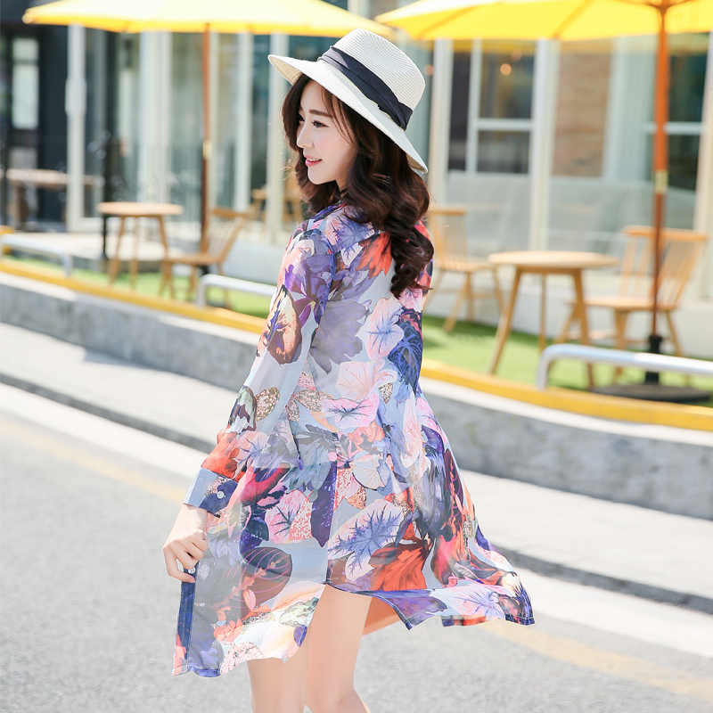 2017戶外夏裝防曬衣女中長款百搭寬松透氣大碼薄款印花沙灘外套