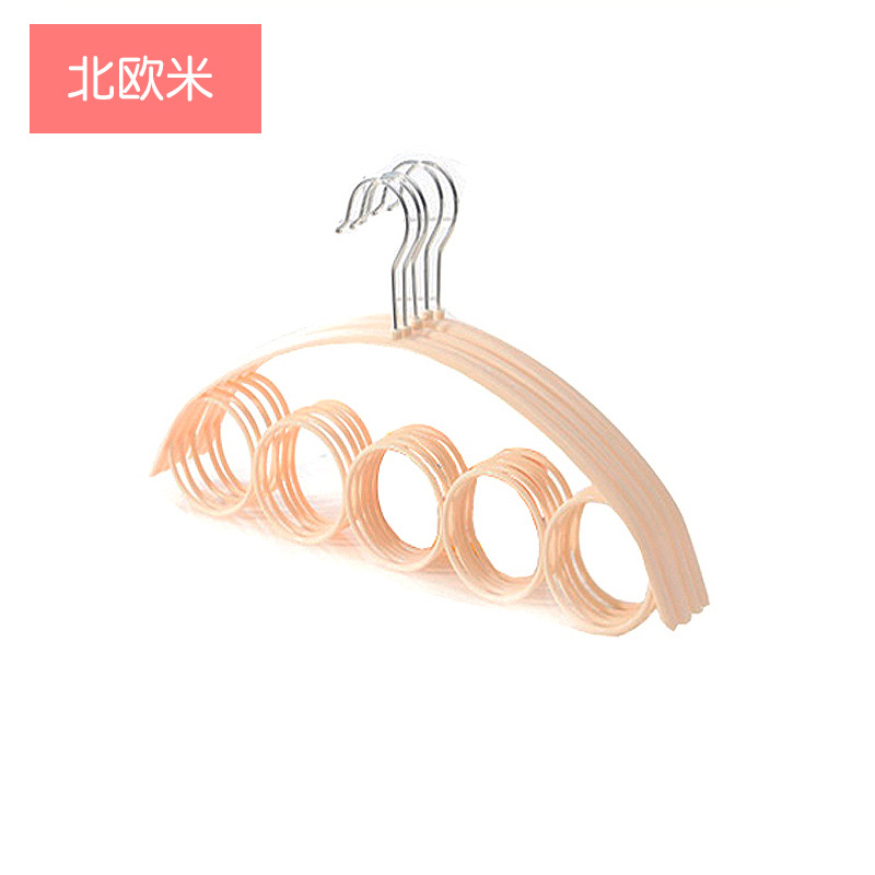 不易變形簡約北歐5環圍巾架防滑塑料衣架 衣柜收納絲巾領帶掛架