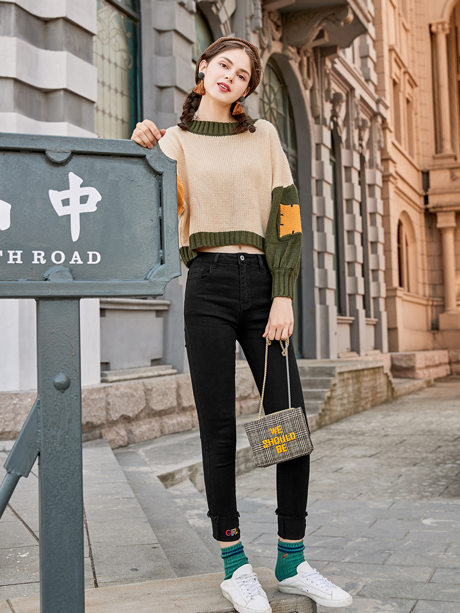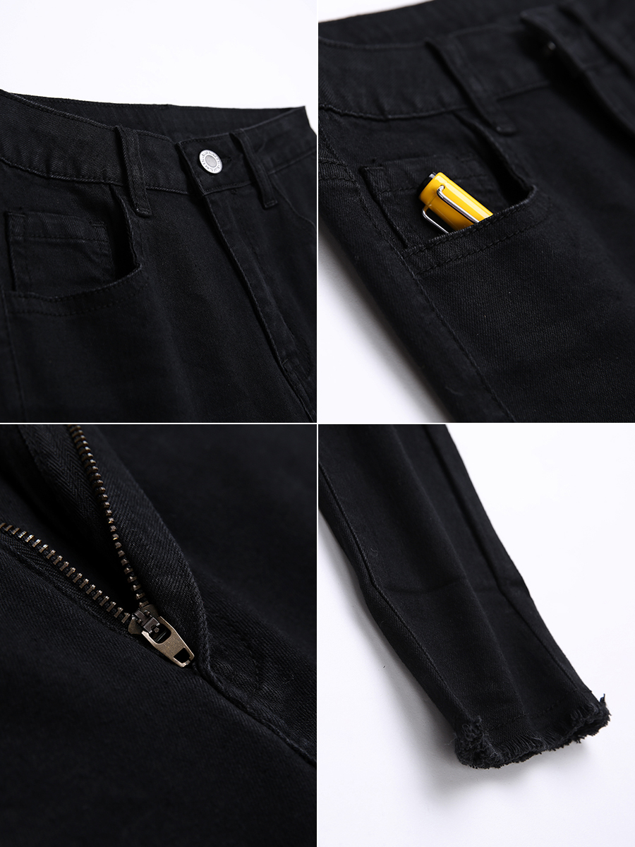 MG小象黑色緊身牛仔褲女秋冬新款韓版顯瘦高腰小腳褲chic風褲子潮