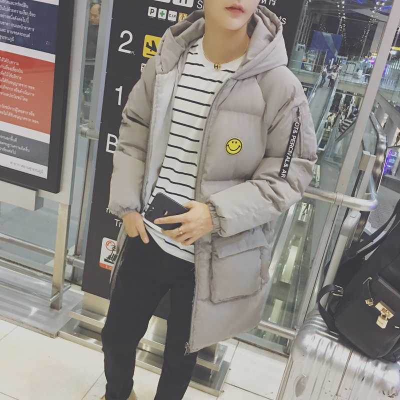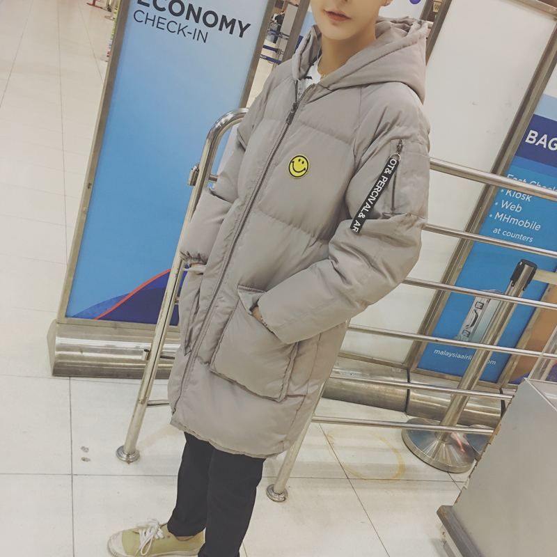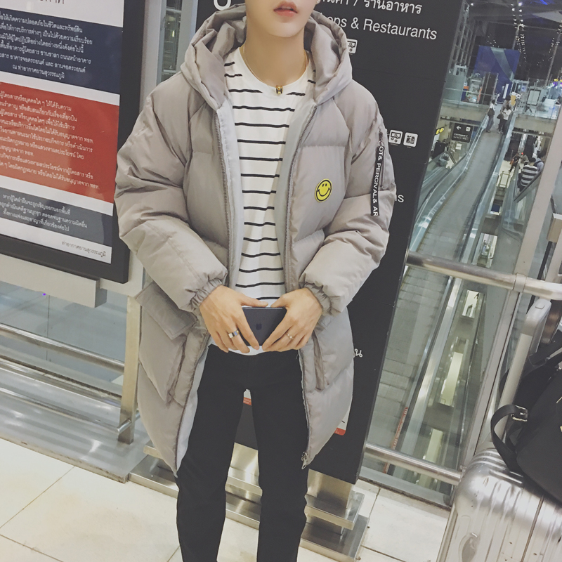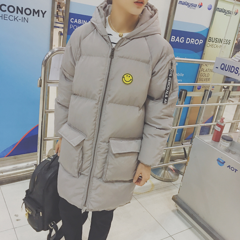 男裝韓版笑臉加厚保暖棉服男士寬松連帽長款棉衣