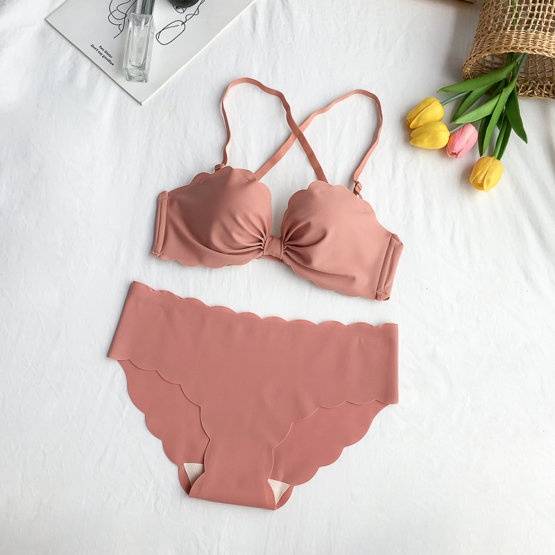/ 2018新款蝴蝶結少女聚攏舒適內衣+性感無痕波浪紋內褲文胸套裝潮
