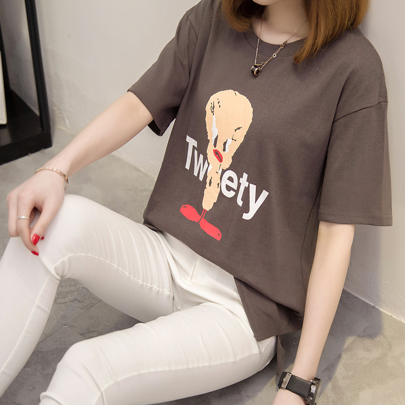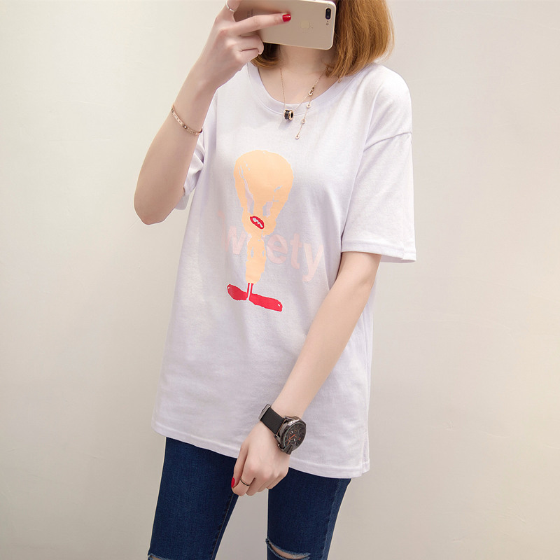 / 女裝春裝新款潮女上衣短袖寬松打底卡通t恤女韓版圓領小衫