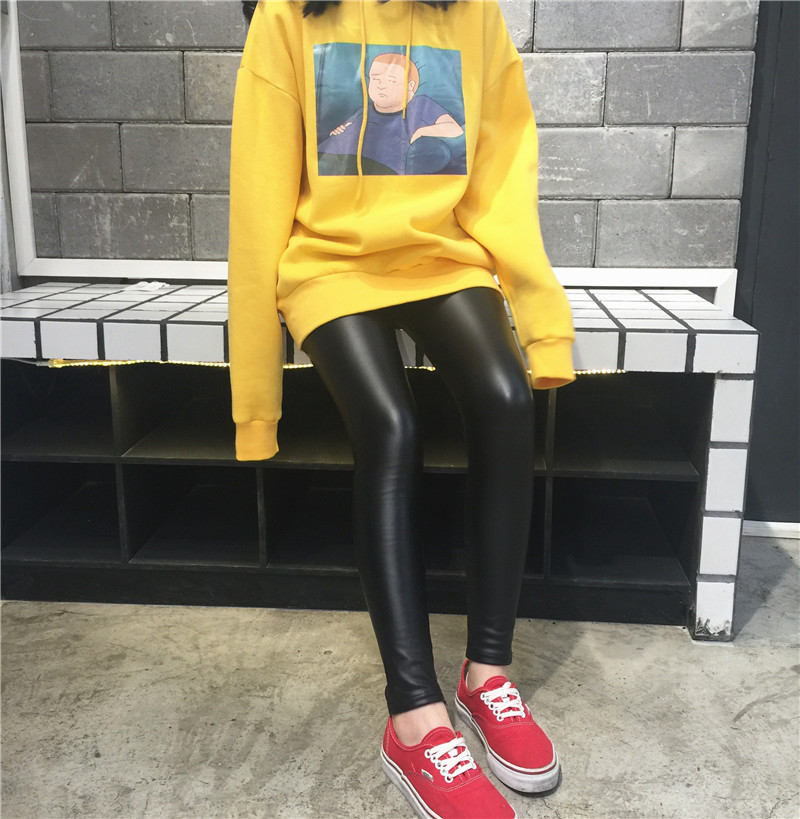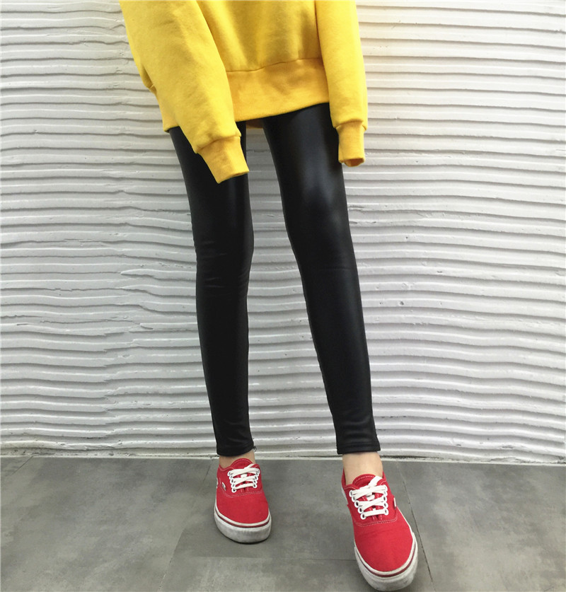/ 秋冬加厚薄絨仿皮打底褲外穿小腳高腰顯瘦長褲緊身PU皮褲女