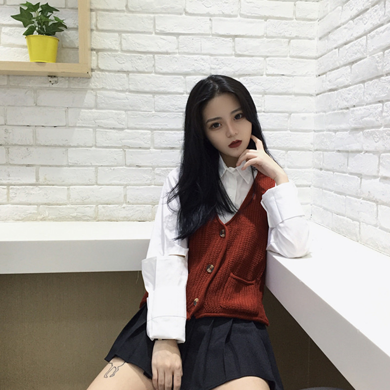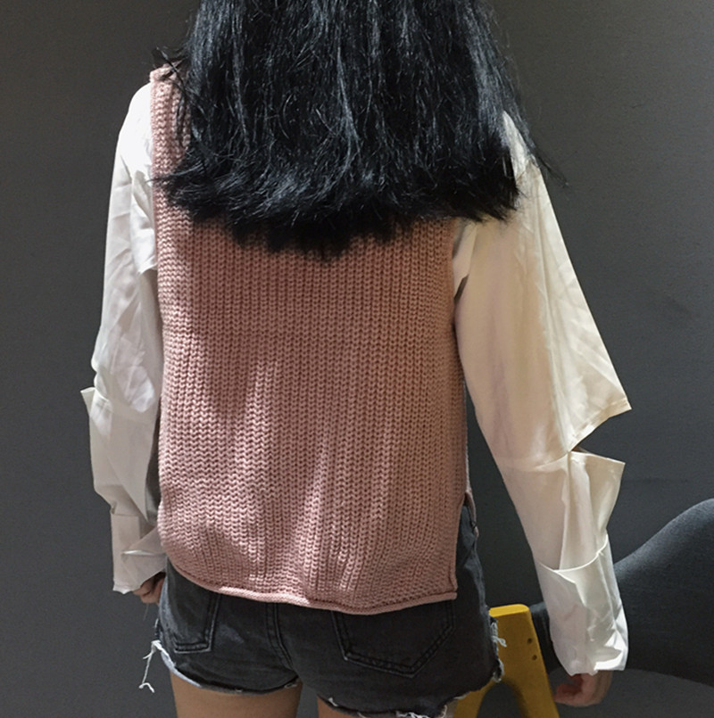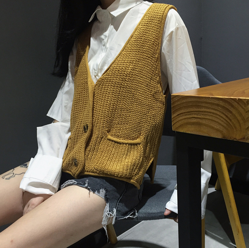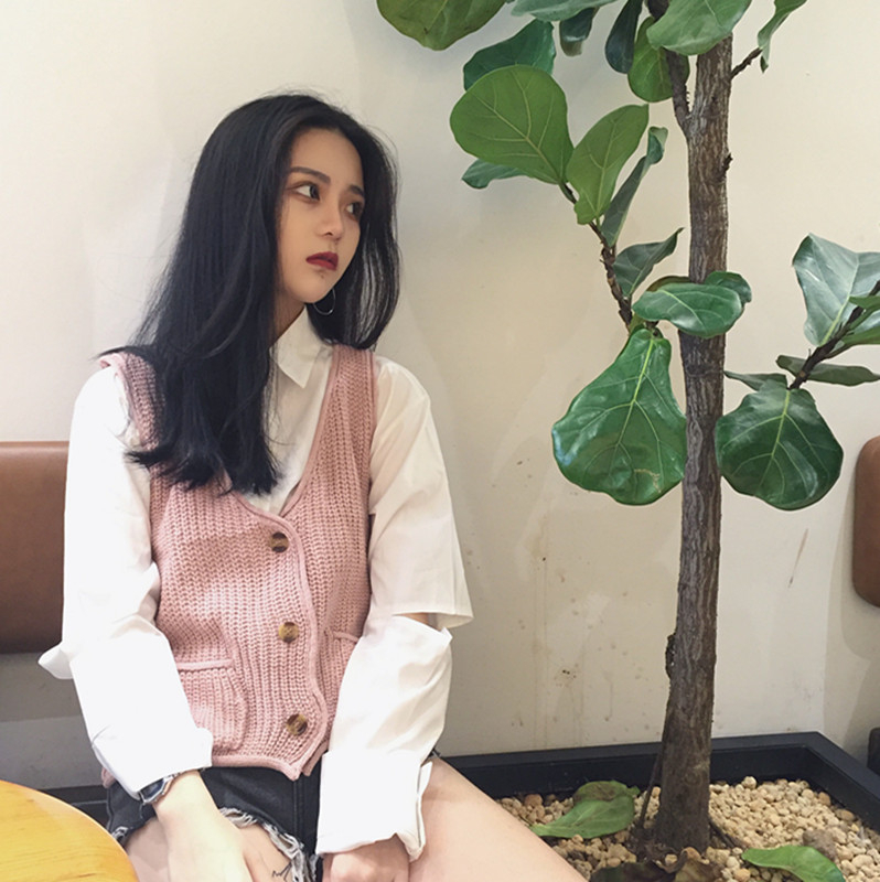 / 韓國復古秋冬款純色針織毛衣背心百搭短款無袖馬甲開衫外套女