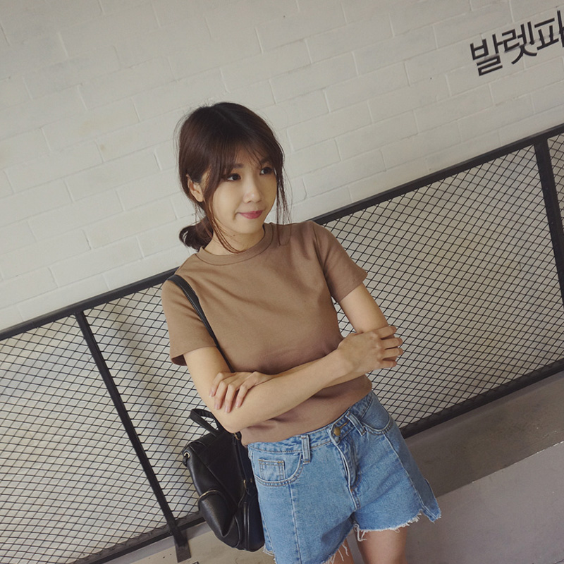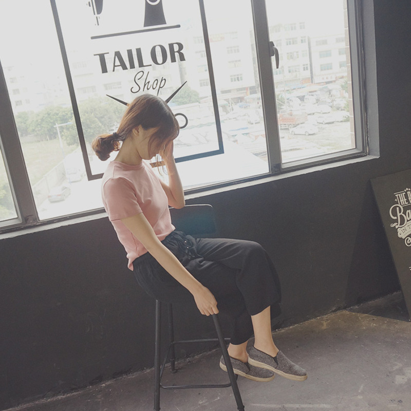 / 夏季新款韓版基礎短袖圓領純色打底學生套頭休閑T恤上衣女裝