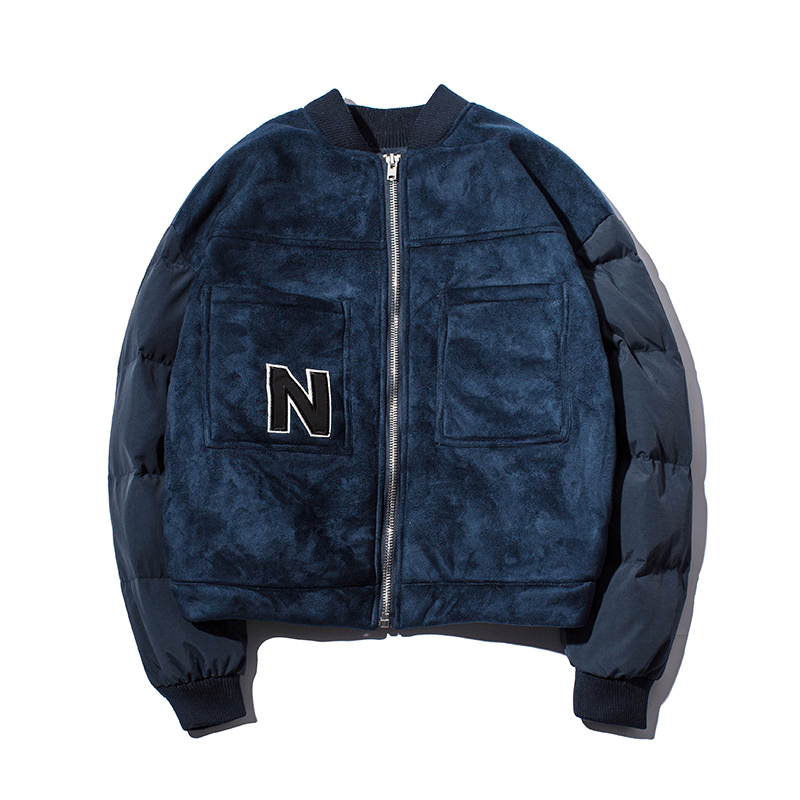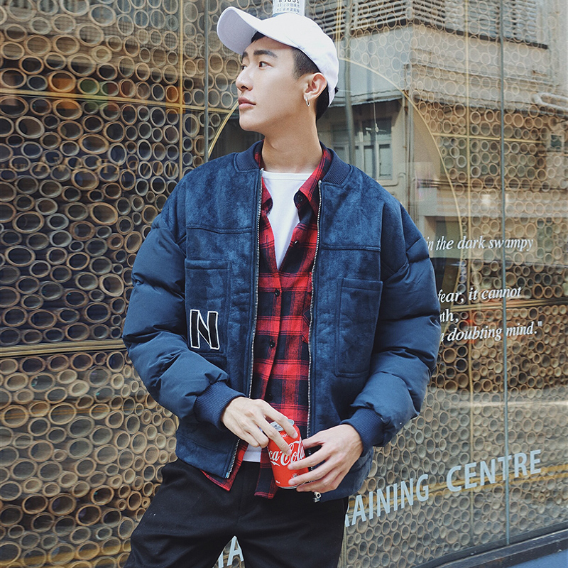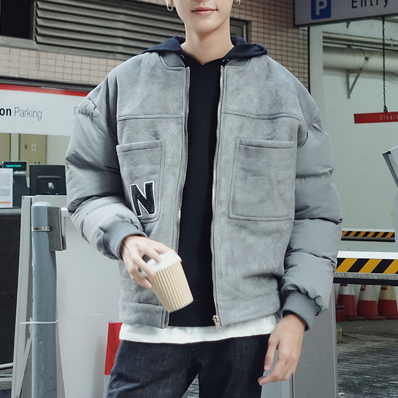 新款冬裝韓版麂皮絨字母貼布手塞棉寬松男士棉衣