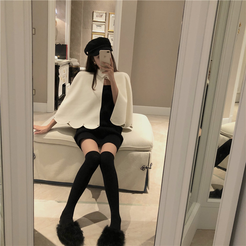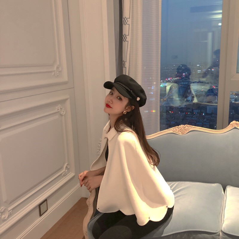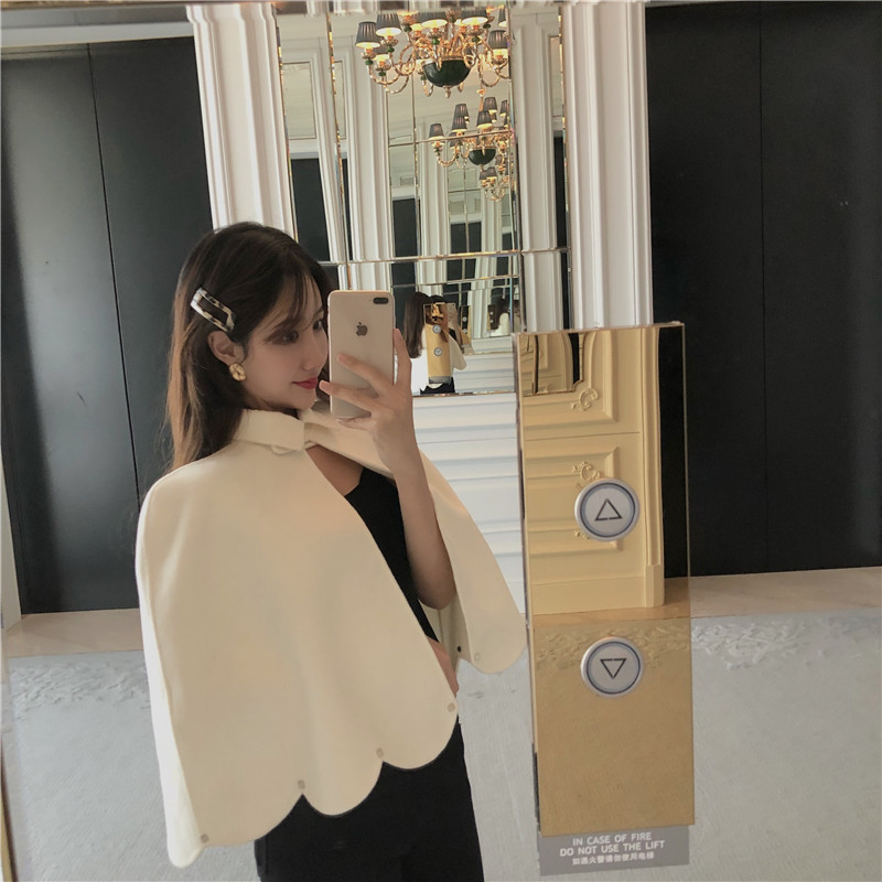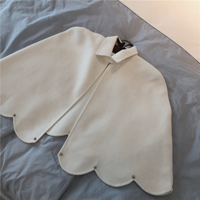 秋冬款新款毛呢女裝百搭氣質時尚花邊勾勒鉚釘點綴chic斗篷款外套