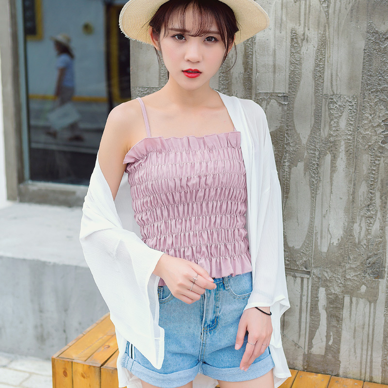 中長款的防曬衫,長度剛好,可以搭配褲裝內搭件小吊帶