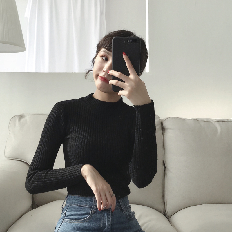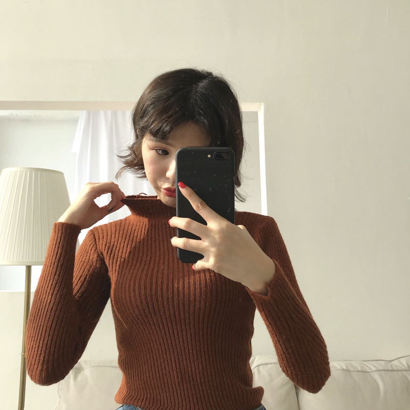純色中高領加厚坑條打底針織衫內搭保暖毛衣