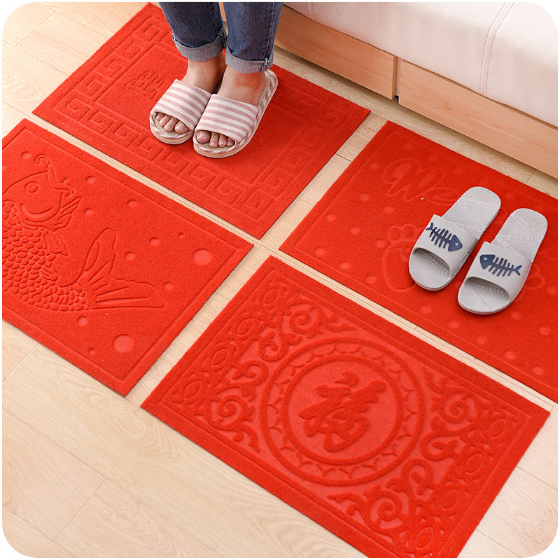 / 加厚防滑出入平安進門地毯墊歡迎光臨用防塵拉絨復合印花腳墊純色