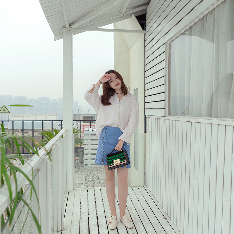 下擺做了前短后長不規則的處理,顯得很是慵懶隨意范