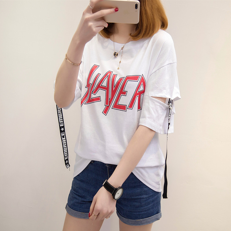 / 短袖上衣女夏裝新款女裝時尚寬松t恤女中長袖半袖韓版百搭潮