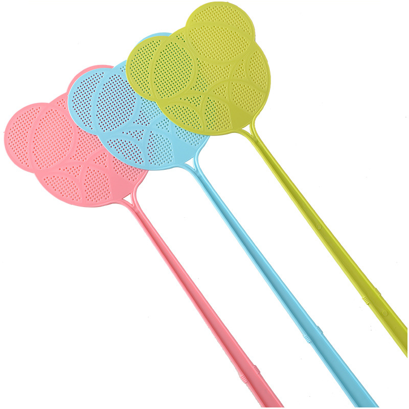 / 創意環保PP家用蒼蠅拍 耐用滅蚊卡通加長手柄塑料手動蚊子拍多彩