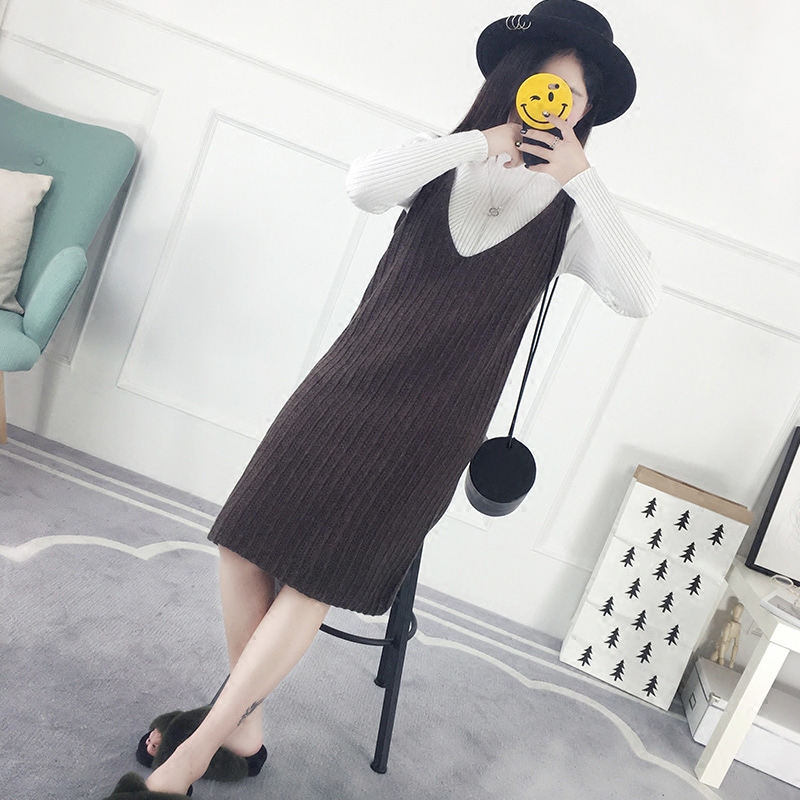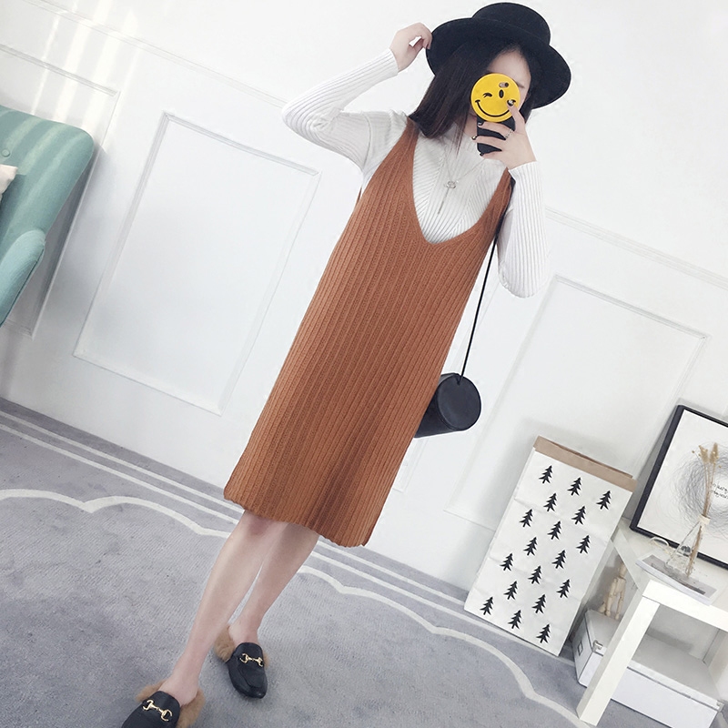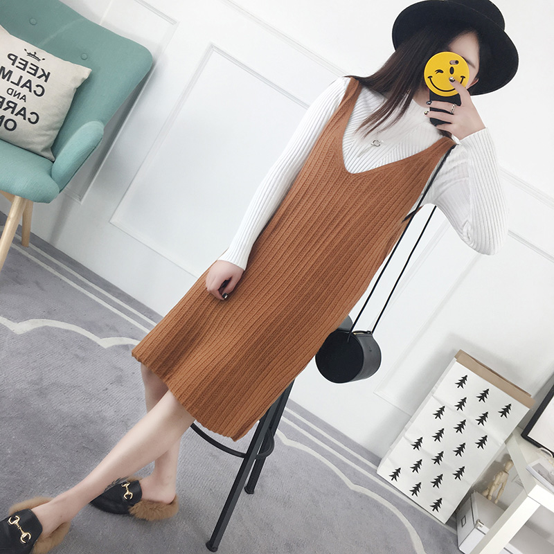 / 秋冬毛衣中長款韓版寬松背心裙針織背帶裙春裝新款連衣裙女裝