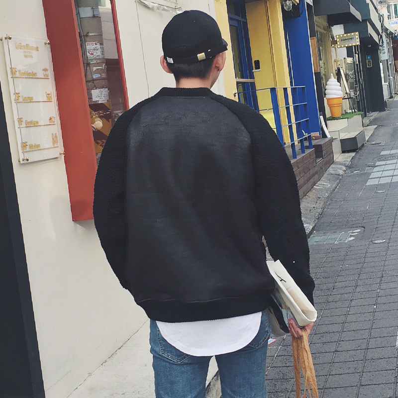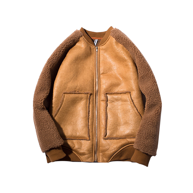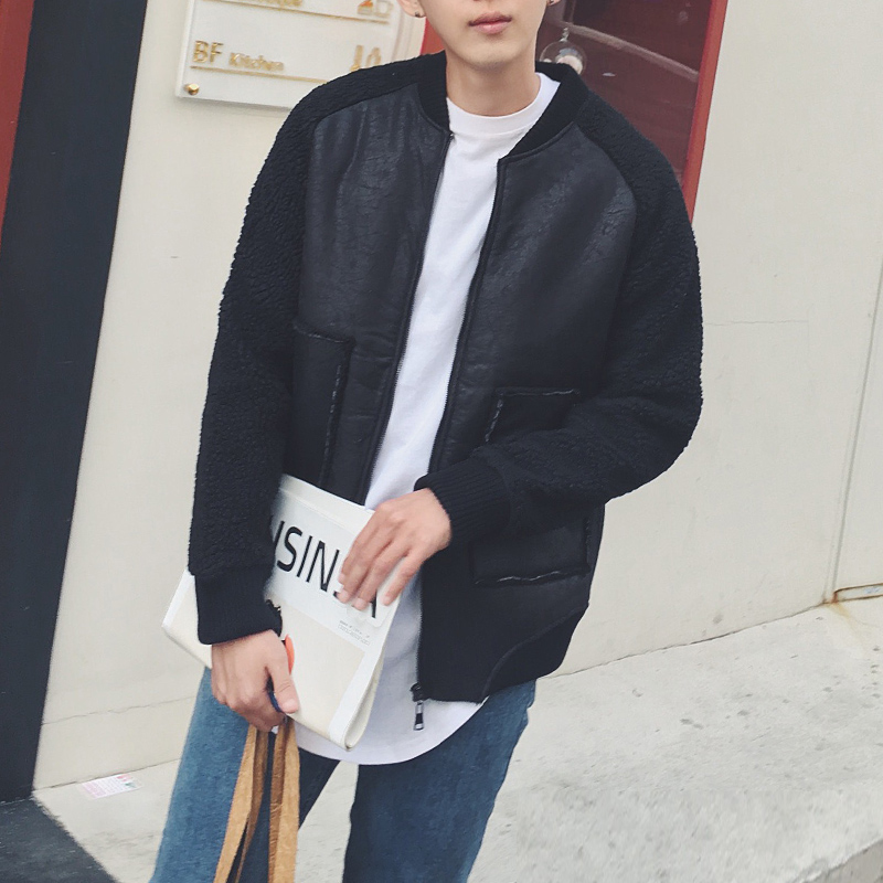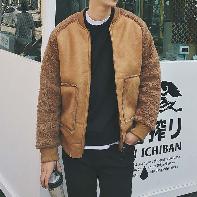 新款男裝韓版羊羔毛拼接麂皮男士保暖短款棉衣外套