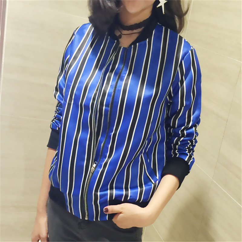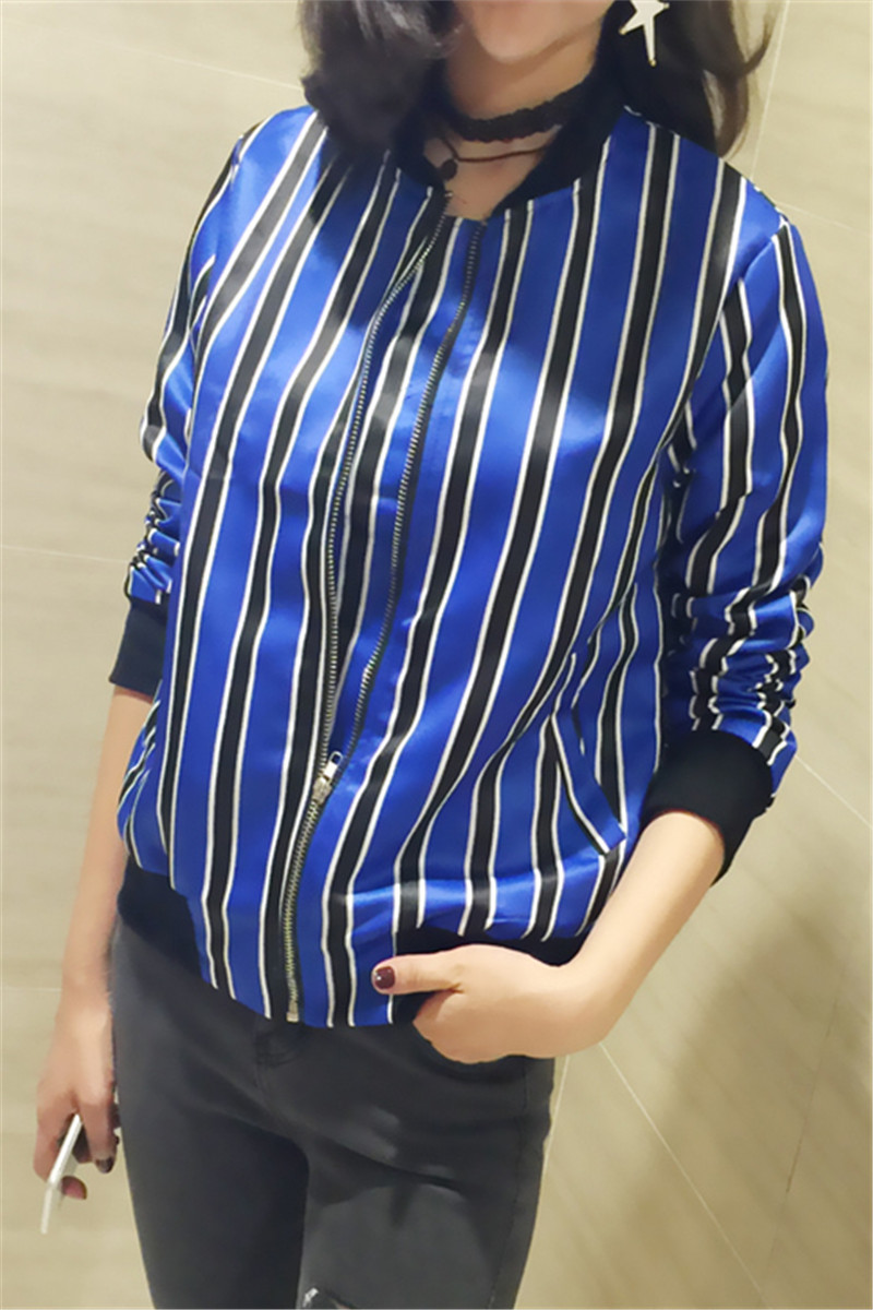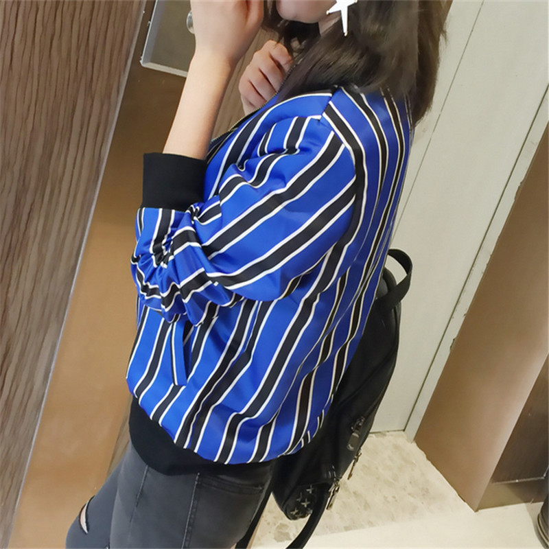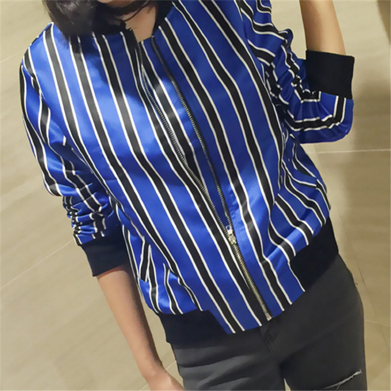 / 韓國chic秋冬款休閑條紋撞色氣質情侶裝長袖拉鏈棒球服外套女