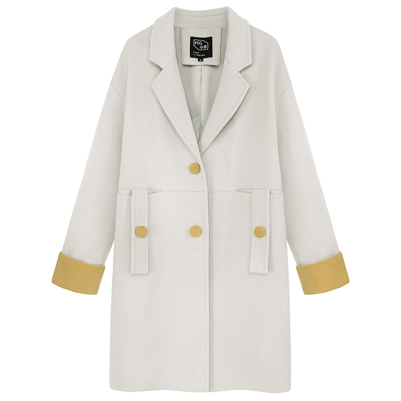 MG小象中長款毛呢外套女時尚寬松顯瘦冬季新款2018流行呢子大衣潮
