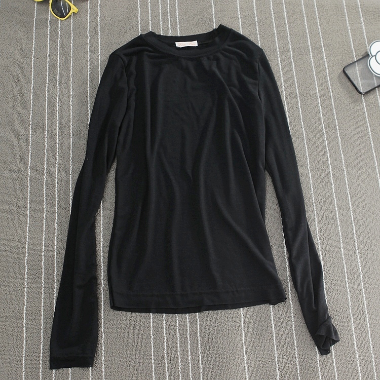 / 韓國秋冬簡約彈力顯瘦圓領套頭修身百搭純色打底衫長袖T恤女