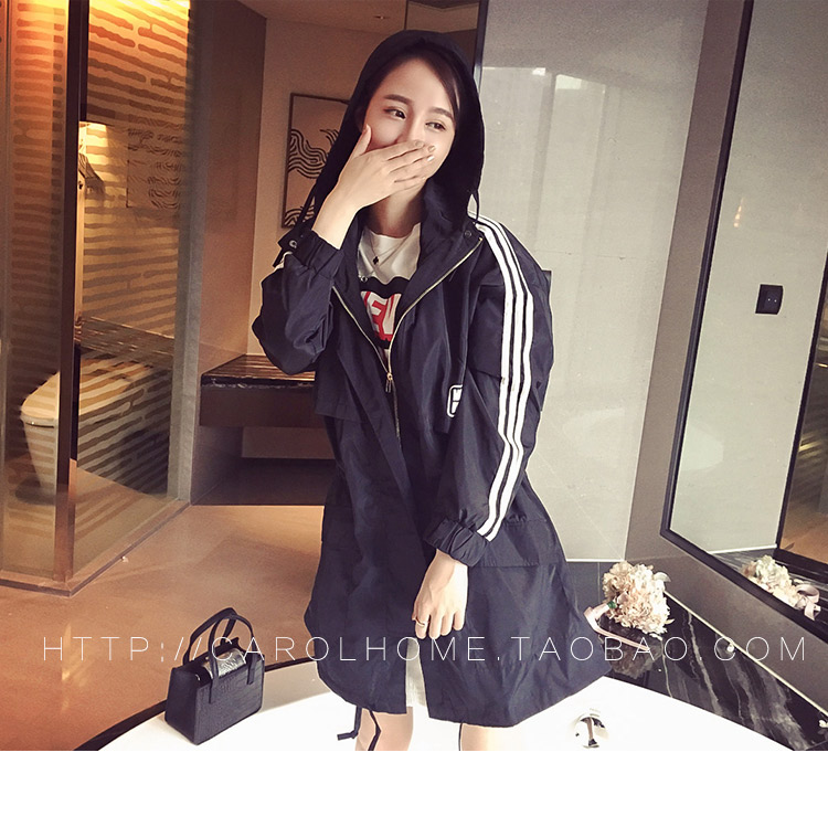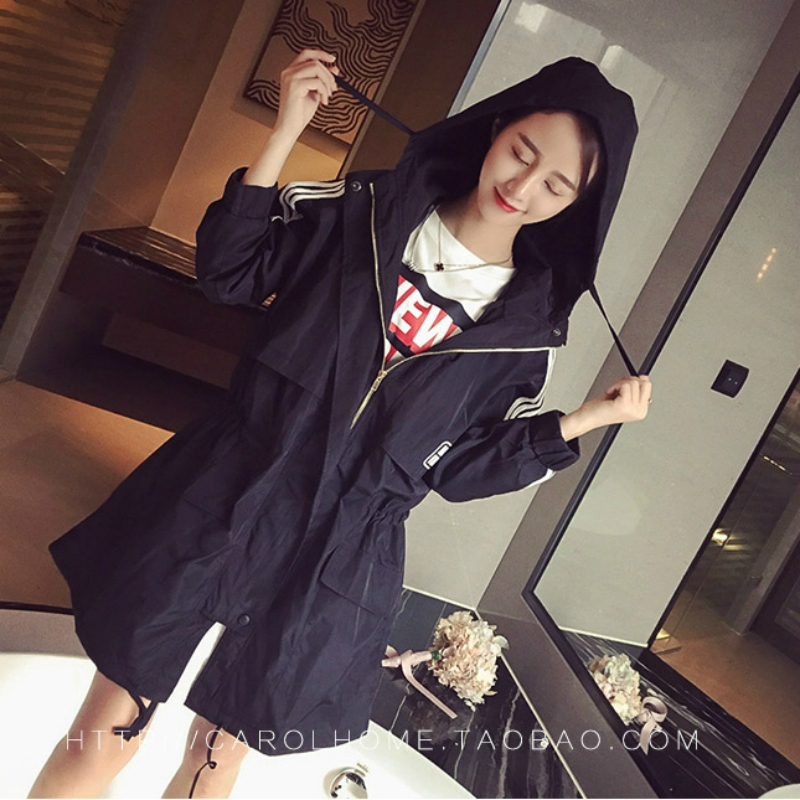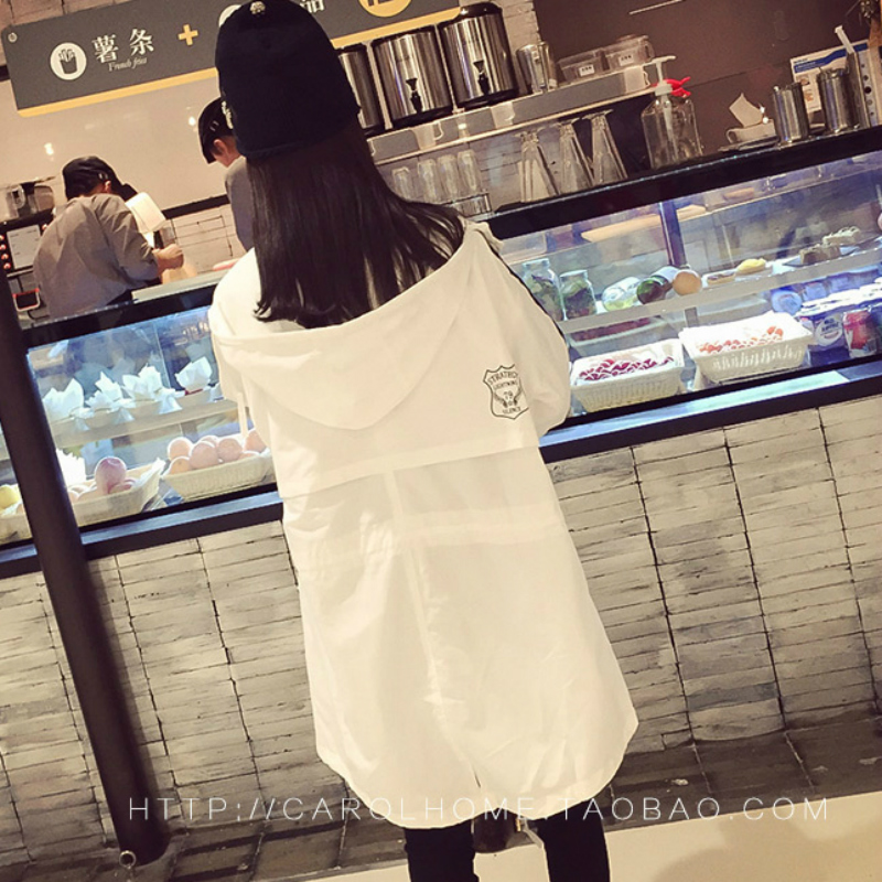/ 夏季防曬衣女春裝新款韓版中長款學生連帽收腰薄款風衣外套潮