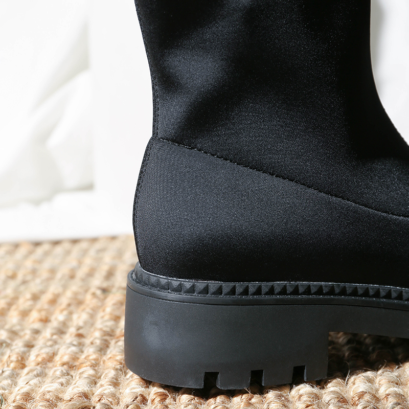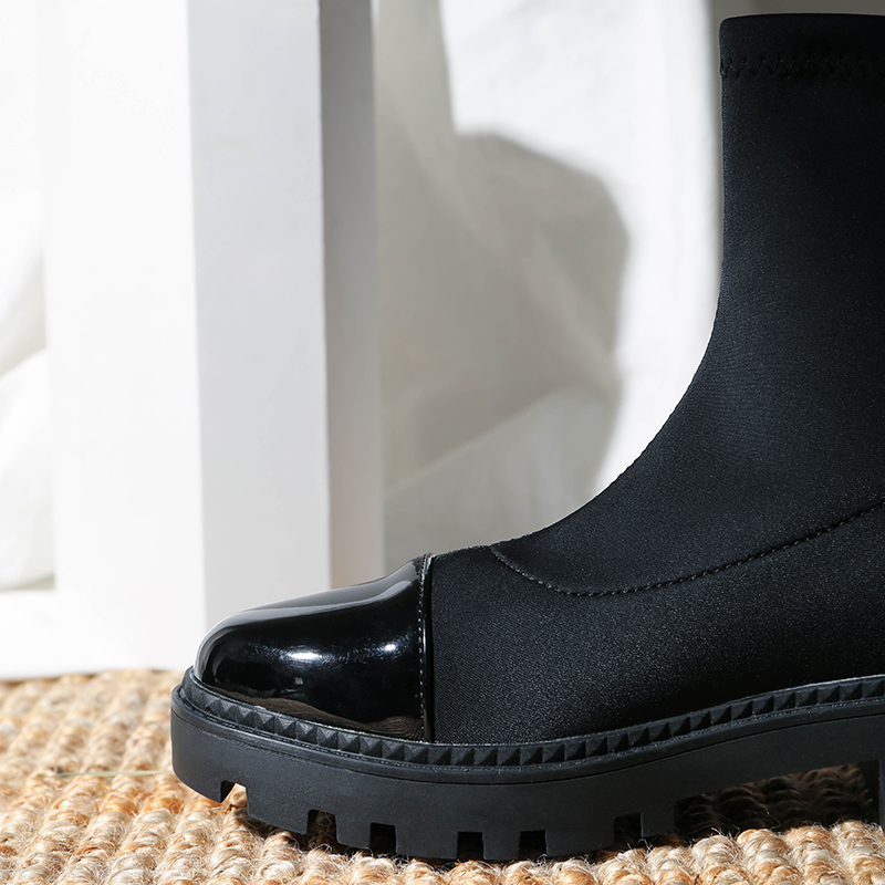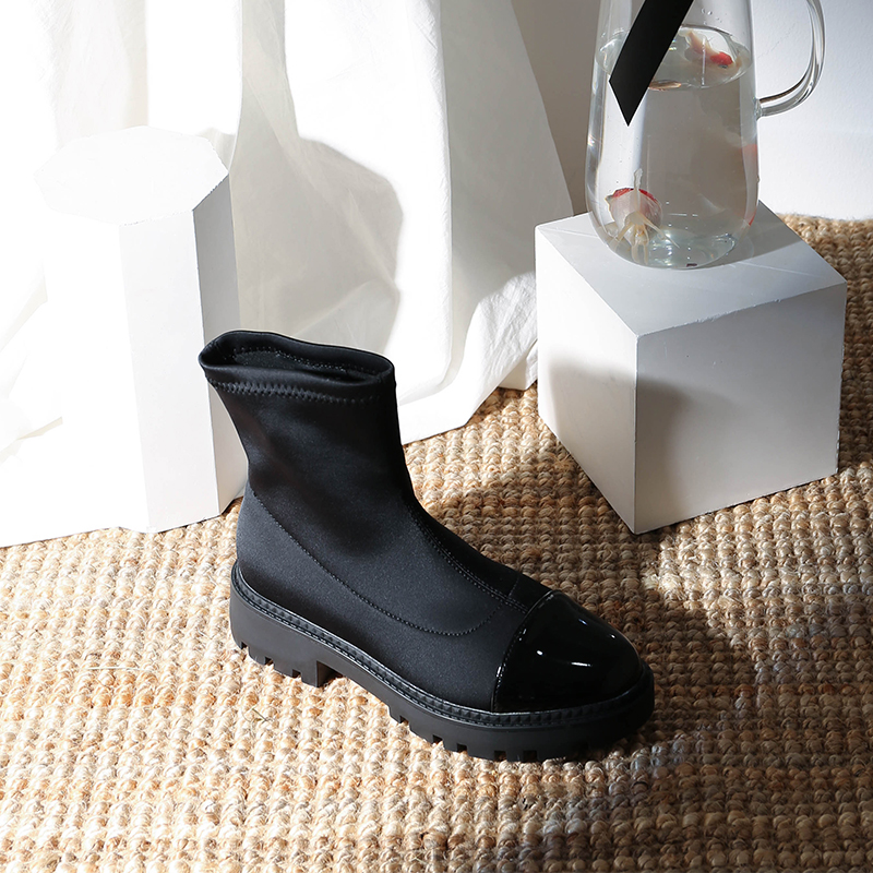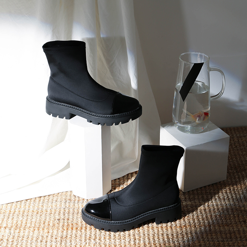 MG小象黑色圓頭女鞋秋冬2018新款時尚粗跟厚底短靴學生韓版馬丁靴