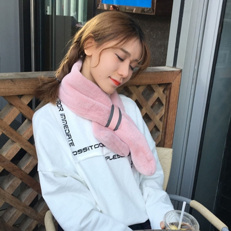 冬款韓國chic風軟妹可愛時尚保暖長條毛絨純色學生圍脖圍巾女